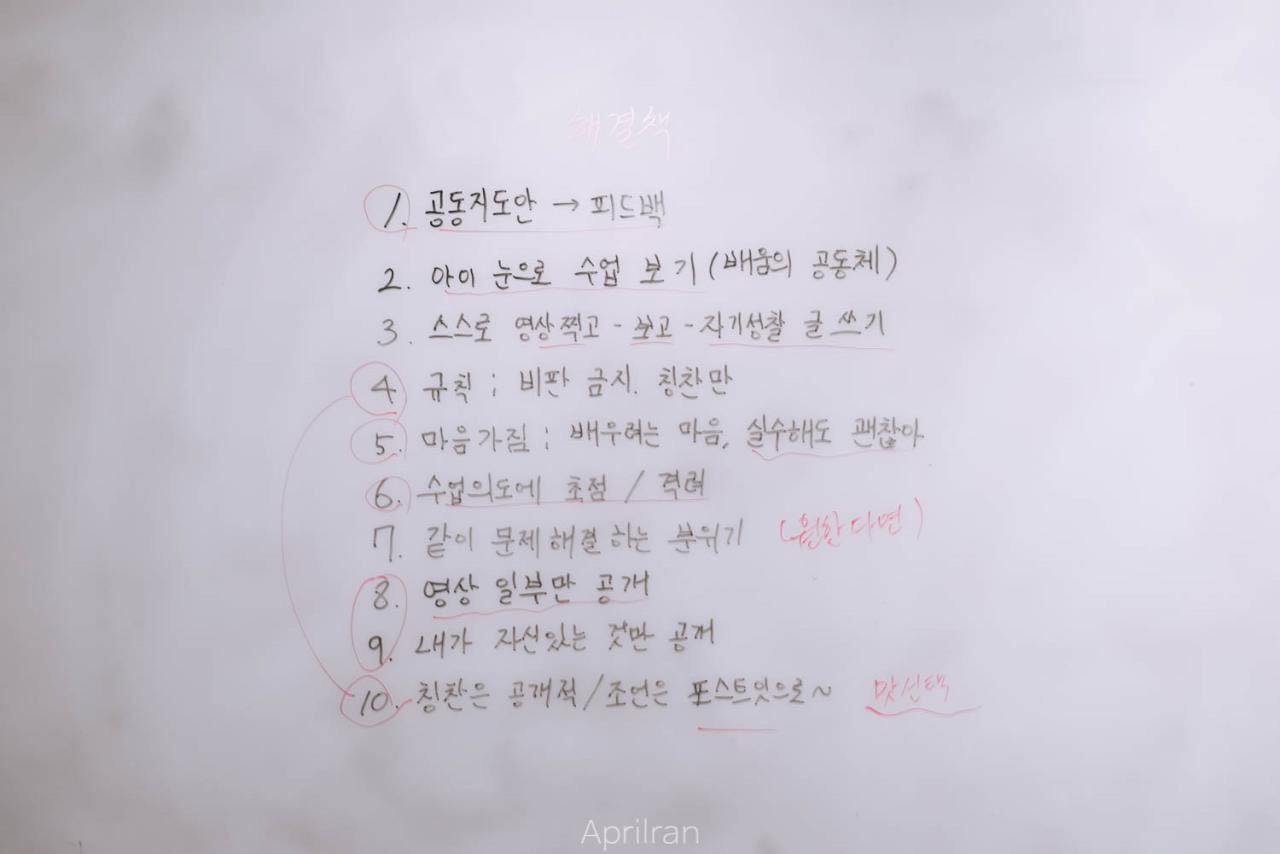 5. 수업 나눔에 관한 이야기 : 내가 가고 난 뒤 나눈 이야기여서 제대로 못 들었지만 수업나눔에 관해 원칙들을 정한 것 같다. 중요한 것 같아 큰 사진으로 기록.