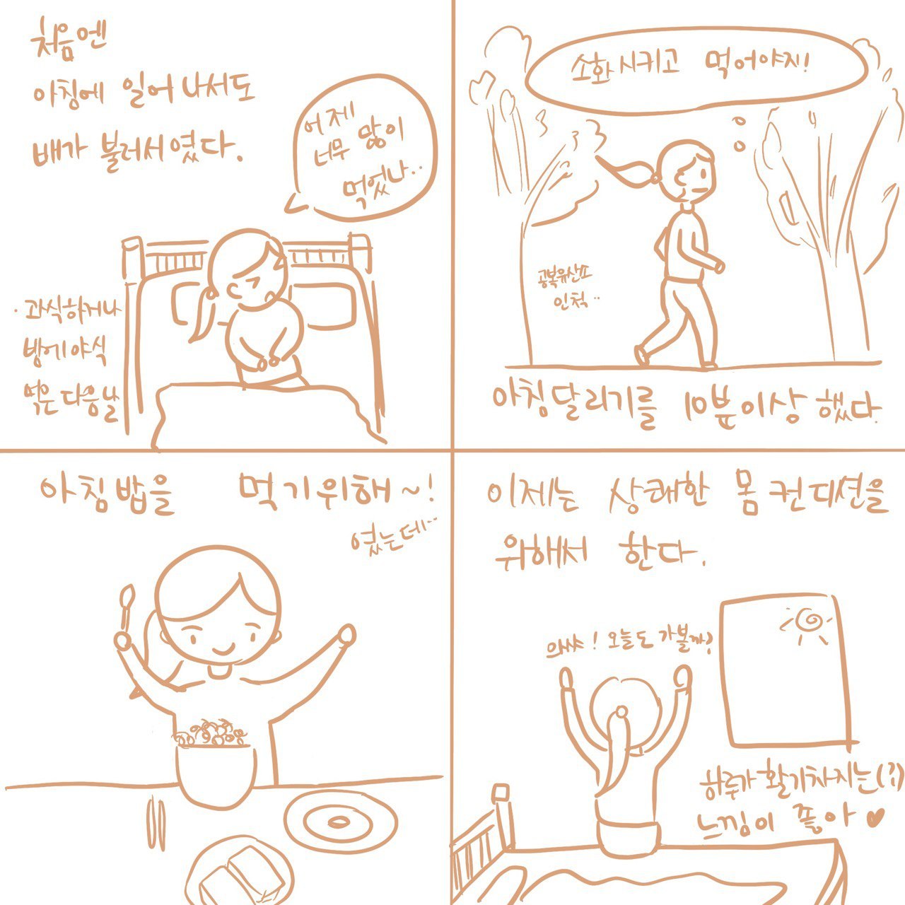 1일 1식이나 간헐적 단식을 평생 할 거 아니면 밥을 규칙적으로 아침, 점심, 저녁을 챙겨 먹어야 한다고 했다. 그래서 아침을 먹기 위해 시작했다. 사실 사과 한쪽을 먹으려고 해도 넘어가지 않을 정도로 위가 더부룩하고 아프니 당연히 해야 하는 일이었다.