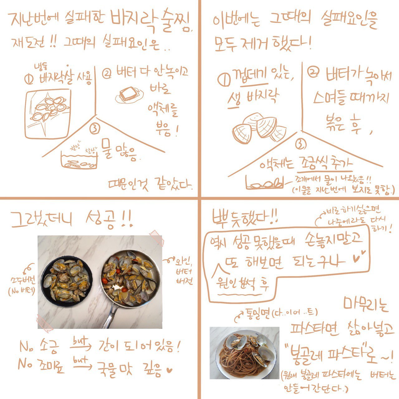 4컷 생각 #15 바지락 술찜 만들기 재도전 - 성공!