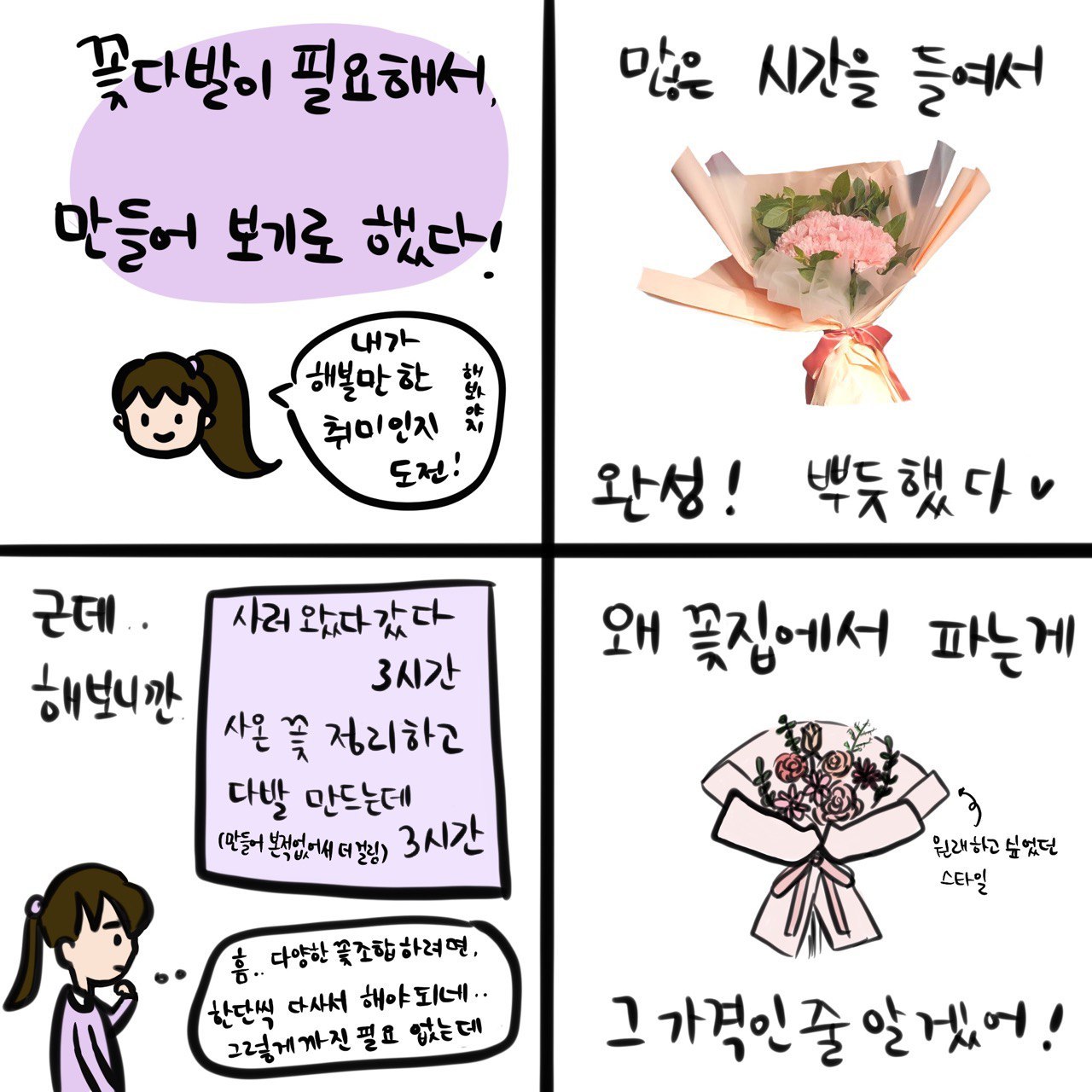 꽃다발이 필요했다. 그래서 만들어보기로 했다. 음.. 근데 사실 필요했다기보다 선물 준비를 다 해놨는데 내가 추가로 준비해보고 싶었다. 또 연쇄취미마의 모습이 튀어나온 거다. 핑계를 대어 시도해본 것이다.