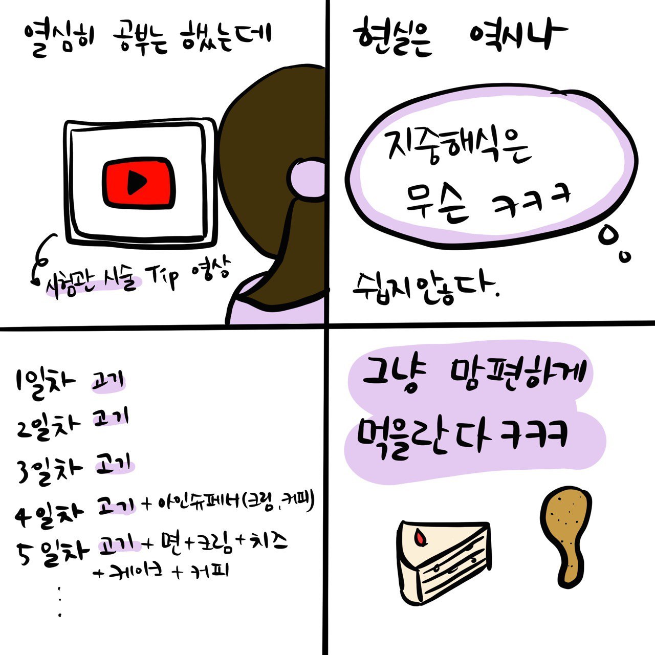 4컷 생각 #39 행복하게 먹는 게 더 좋을 거야