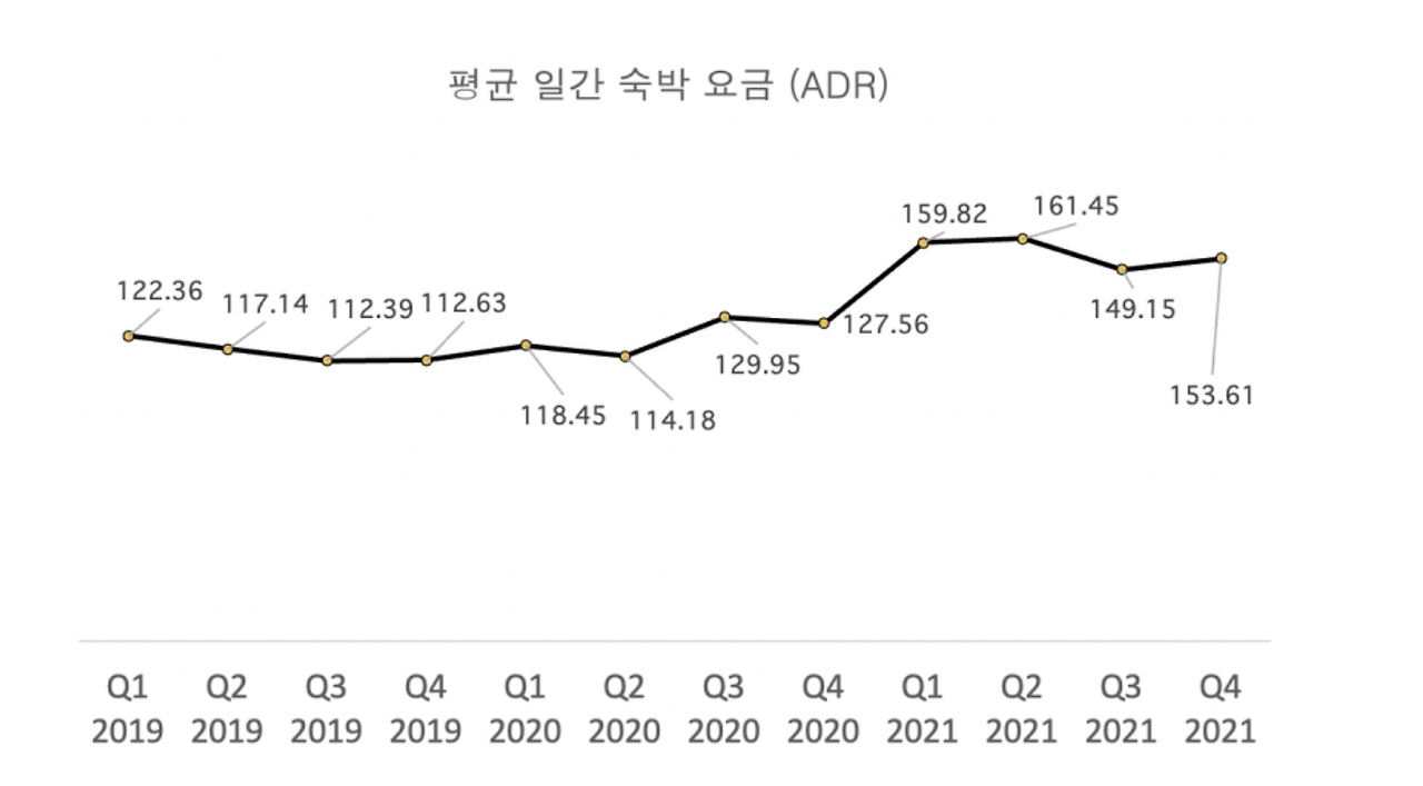 평균 일간 숙박 요금을 보면 2020년 4분기를 기준으로 대폭 상승했다. 즉 평균 숙박 요금 증가가 매출 증가의 주요인임을 알 수 있다. 평균 여행 기간도 15% 증가하였고, 7일 이상 숙박이 절반 이상을 차지한다고 한다. 28박 이상의 숙박 카테고리가 증가하여 숙박의 22%를 차지하고 있기도 하다.