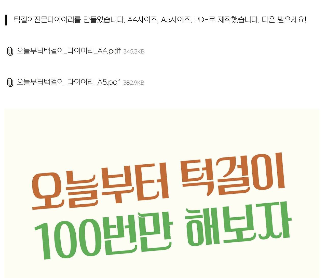 턱걸이전문다이어리를 만들었습니다. A4사이즈, A5사이즈. PDF로 제작했습니다. 다운 받으세요!