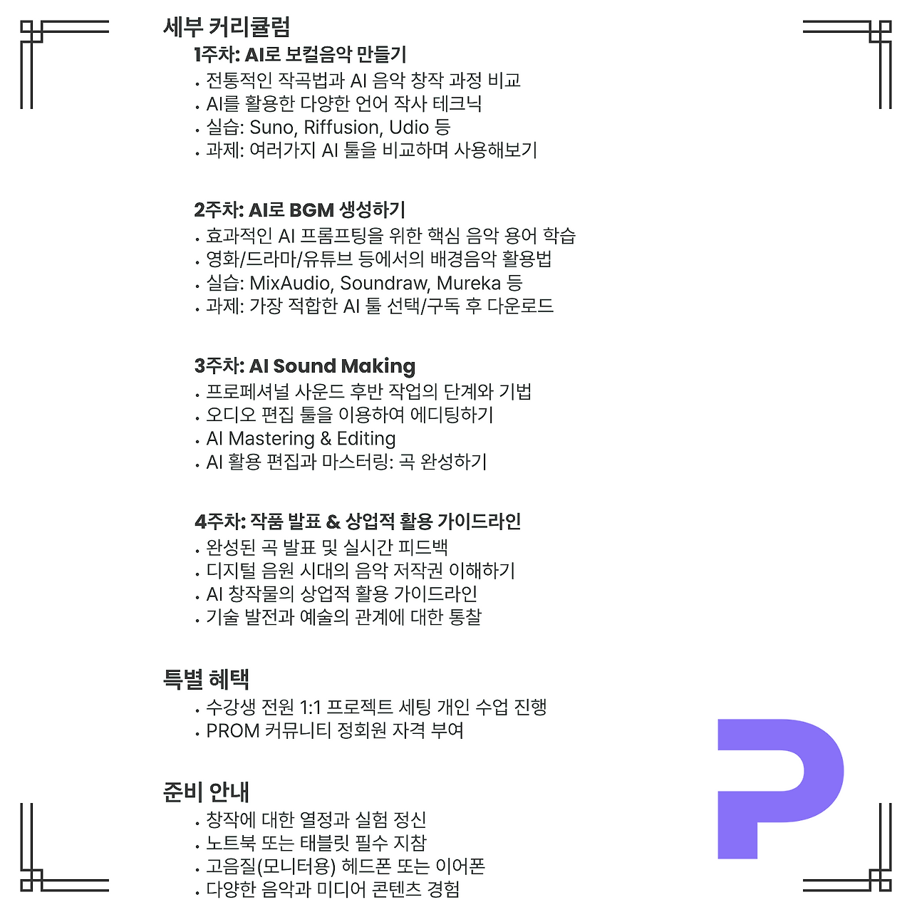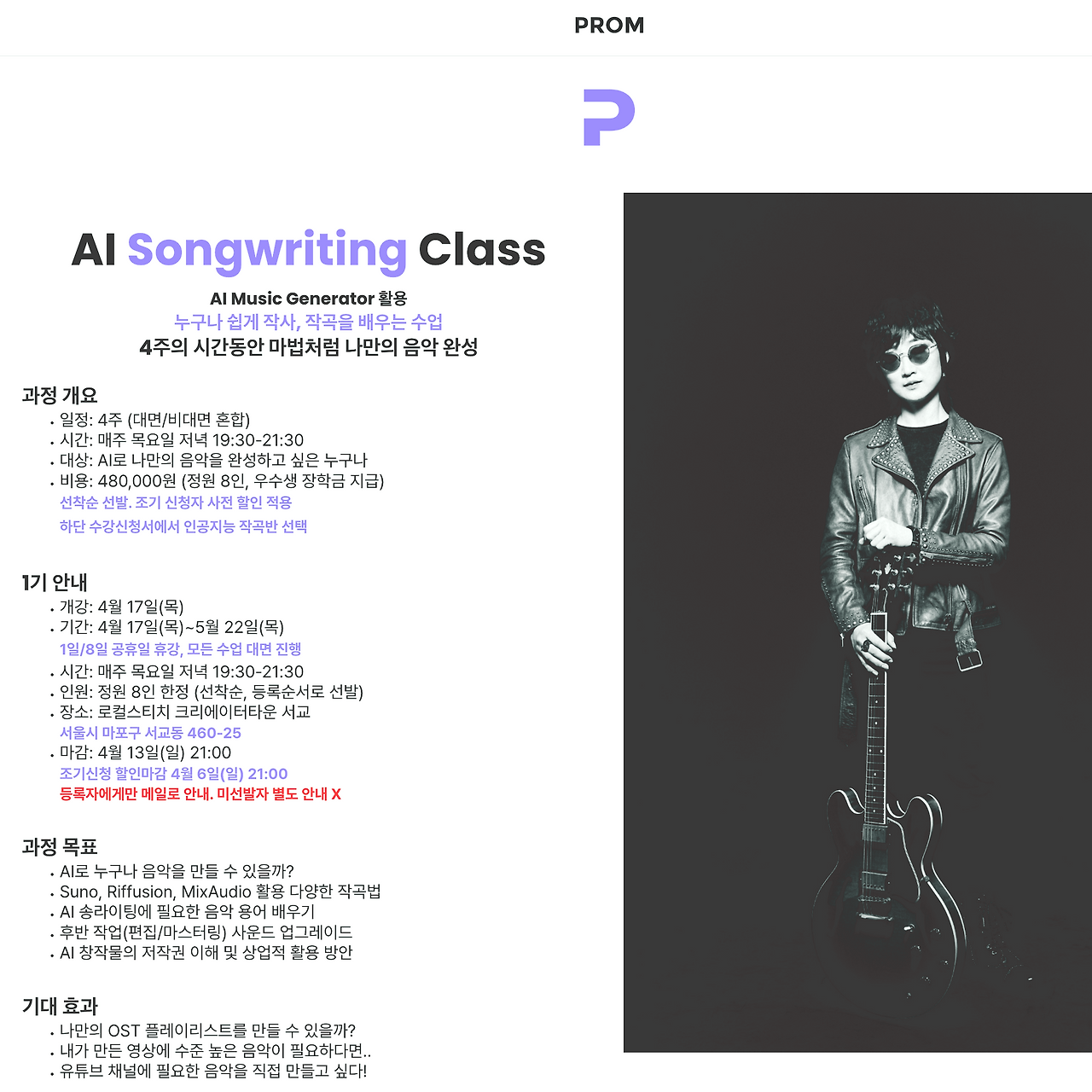 "AI 송라이팅(작곡)반" 4주 과정이 생겼습니다.