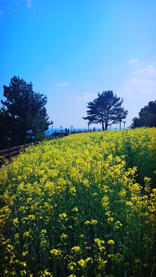 하늘하늘 살랑살랑 거친 바람에 마음 둘 곳이 어디인 지 모를 유채꽃도 여기저기 만개하였다. 가족, 연인, 친구 단위로 모여 같은 곳에서 저마다 다른 추억들을 사진으로 새기는 모습도 장관이다.