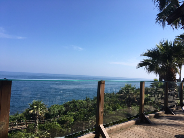 큰엉 올레길 아래로 바다가 쭈욱 펼쳐지면서 시야가 확 트이는 게 가슴이 뻥 뚫리는 느낌이 들었다. 짜증은 온 데 간 데 없이 사라졌고 아이도 간식을 먹으니 금새 기분이 좋아졌다. 남편과 나란히 앉아 푸르른 하늘과 바다의 경계선이 어딘 지도 모를 풍경을 바라봤는데 그새 입가에 미소가 지어졌다. 때론 인위적인 공간도 필요하지만, 그보다 자연이 우위라는 것에 우리는 부정할 수 없었다.