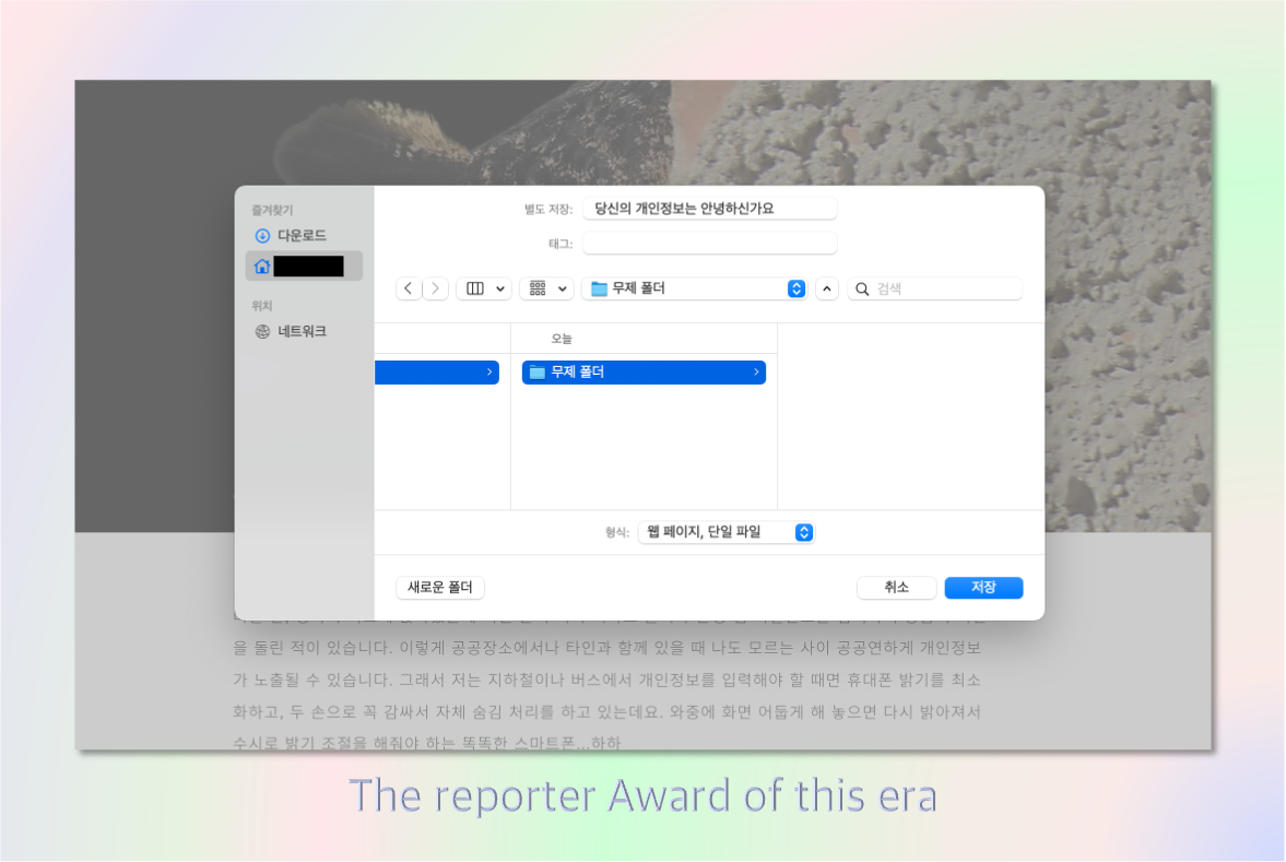 캡처하여 이미지를 저장하는 것도 좋지만, 서비스의 동작이나 애니메이션을 확인할 수 없기 때문에 정보의 획득이 제한적일 수밖에 없습니다. 그럴 때는 ctrl+S를 눌러 단일파일로 웹 페이지를 저장하면 됩니다. 브라우저로 해당 파일을 열면 저장된 웹 화면을 확인할 수 있습니다. 물론 모든 기능이 100% 동작되지는 않고 맥에서 저장하면 가끔 폰트가 깨진다는 점도 있기 때문에 이미지도 같이 저장해 놓는 것이 좋습니다.