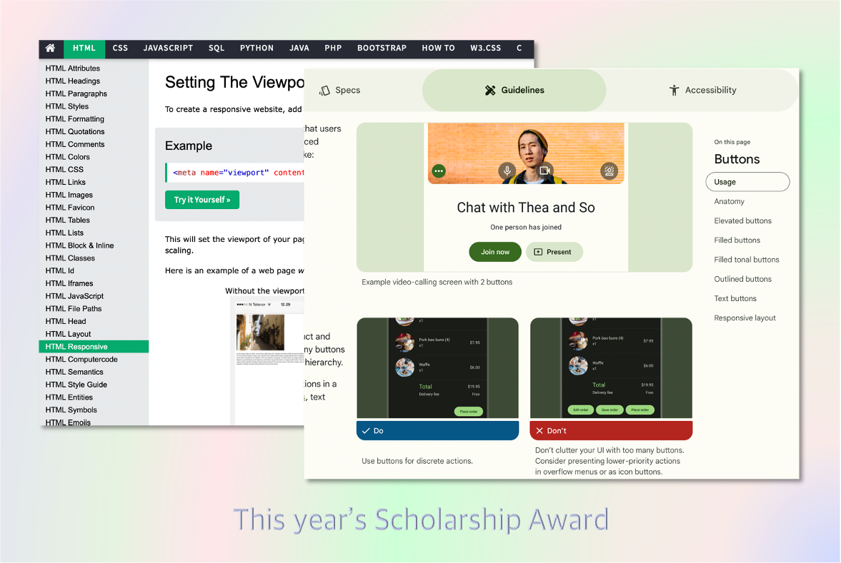 그리고 더불어서 같이 보면 좋을 서비스는 구글의 머터리얼 디자인 https://m3.material.io/components입니다. 아마 스토리보드 작업할 때 난감한 것 중 하나가 수많은 UI 요소와 용어일 텐데요. 머터리얼 디자인에서는 어떤 UI 요소가 있는지, 또 적합한 디자인과 부적합한 디자인은 무엇인지 쉽게 파악할 수 있습니다. 물론 구글의 디자인이기 때문에 구글?스럽습니다. 그래서 어디까지나 참고용으로 보시고, 또 다른 UI 관련 서적이나 자료를 참고하시면 좋을 듯합니다.
