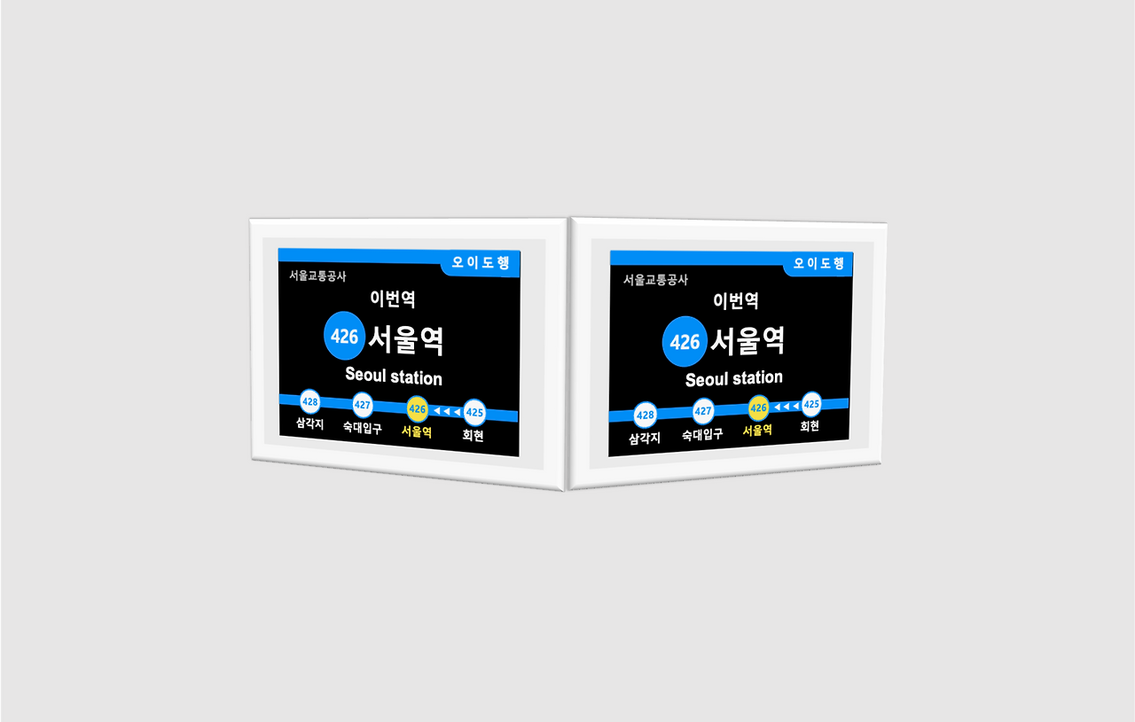 지하철을 타다 보면 한 번씩은 꼭 보게 되는 광경이 "ㅇ ㅕ기 ㅇㅓ디ㅣ지..?" 하며 사람들이 주위를 두리번거리며 전광판을 찾는 모습입니다. 몇 년을 타도 익숙하지 않은 건 호선마다 또 지하철마다 전광판의 위치와 기기 그리고 안내 방식이 다르기 때문일 것입니다. 혹은 볼 수 있는 전광판이 없었기 때문일 것입니다.