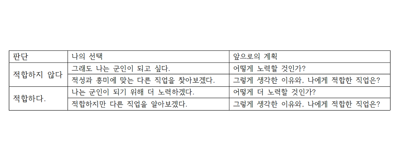 이런 질문들에 대답을 하며, 자신의 희망 직업에 대한 탐색과 주관적인 적합도를 확인해본다.