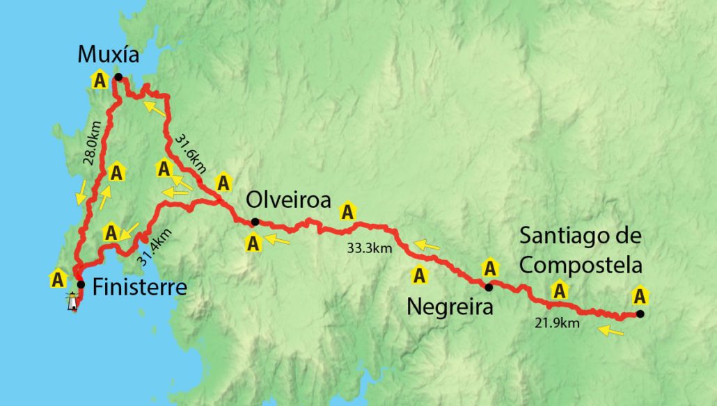 3. 걷는 순서 :산티아고에서 걷다가 2/3 지점에서 피니스테레와 묵시아로 가는 갈림길이 나온다.