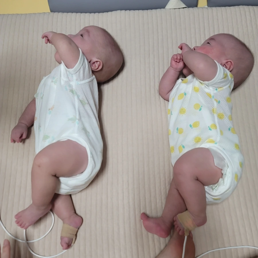 남편과 나는 같이 육아휴직을 내고 하루종일 아이들을 돌보고 있다. 둘이서 한 아이씩 데리고 있으면 육아 어렵지 않겠지 생각했는데 콧줄과 산소포화도 모니터를 단 쌍둥이를 육아하는 과정은 생각만큼 쉽지 않았다. 부비적거리기 좋아하는 아기들의 코에서 콧줄은 수시로 빠져나오고, 목욕을 할때도 콧줄은 달고 있으니 욕조에서 씻기고 옷갈아입히고 하는 단순한 과정도 복잡해졌다. 아기가 둘이니 산소포화도 모니터, 콧줄, 전원선 네개가 기저귀 갈러 왔다갔다 할때마다 엉켰고 아기들을 데리고 거실에서만 움직일 수 밖에 없었다. 덩치 큰 산소발생기가 하루종일 더운 바람을 뿜어내서 에어컨을 24시간 틀어놓아도 아기들 피부 여기저기에 울긋불긋한 태열이 올라왔다.