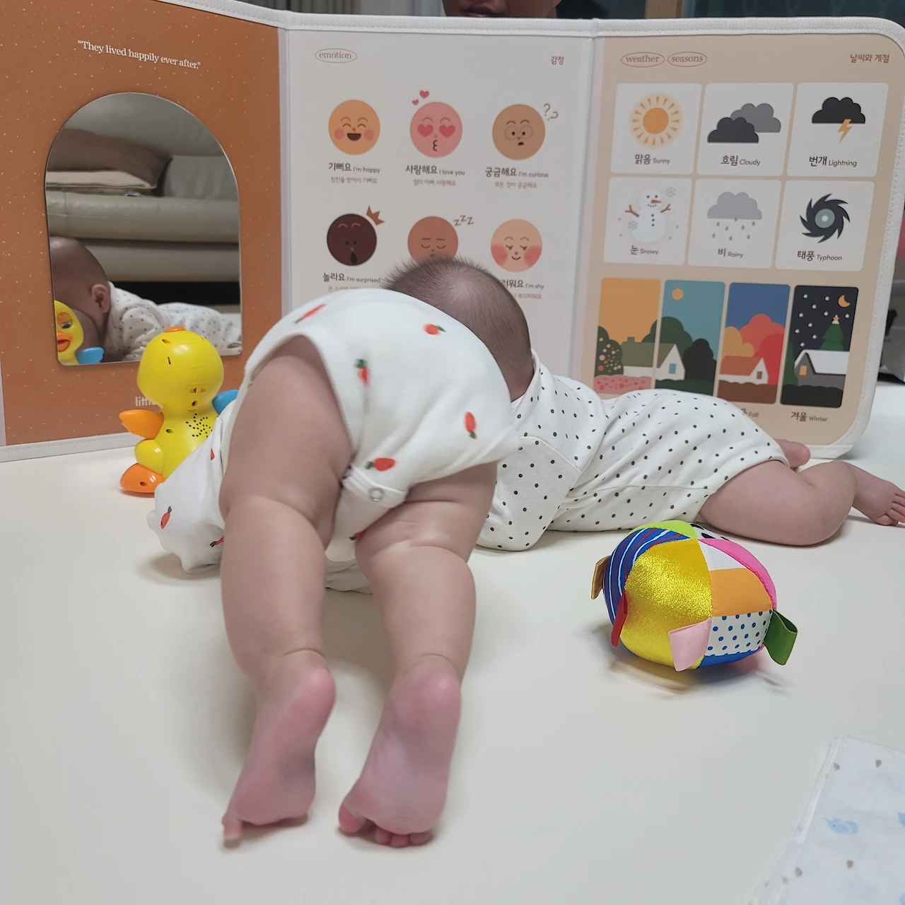 우리 아이들은 이제 교정 180일을 넘어 발달상으로 만 6개월의 모습을 조금씩 보여주고 있다. 산소콧줄은 퇴원해서 두달 정도 달고있었고, 산소포화도 모니터링은 그 후 몇달 더, 최근엔 밤에 잘때만 모니터링 하다가 교정 4개월쯤? 됐을때 완전히 졸업했다. 100일의 기적이라고 하는 통잠도 아직이고, 새벽수유도 하고 있지만 성장곡선도 나름 잘 따라잡고 있고 열심히 뒤집기, 되집기, 피봇팅 하면서 기어다닐 준비를 하고 있다. 요즘은 앉혀놓으면 제법 팔을 짚고 버티고 있는데, 누워서 보던 세상에서 엎드려서 보는 세상으로, 이제 앉아서 보는 세상으로 업그레이드 된 기분인지 힘들텐데도 얼굴을 보면 싱긋 웃으면서 뭔가 뿌듯해하는 표정인 것 같다.