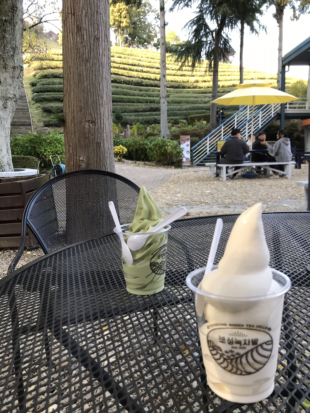 한번 이기면 1칸, 두 번째는 3칸, 세 번째는 5칸, 네 번째는 10칸. 기하급수적으로 늘어나는 걸음 수에 아이의 승부욕이 불타올라 긴 계단을 순식간에 올랐다. 가파른 경사를 따라 둥그런 줄로 펼쳐지는 탁 트인 차밭의 풍경에 감탄이 절로 났다. 여러 번 와서 봐도 질리지 않는 초록이 주는 평화로움과 해방감의 위안이 너그러이 눈앞에 펼쳐져 있었다.