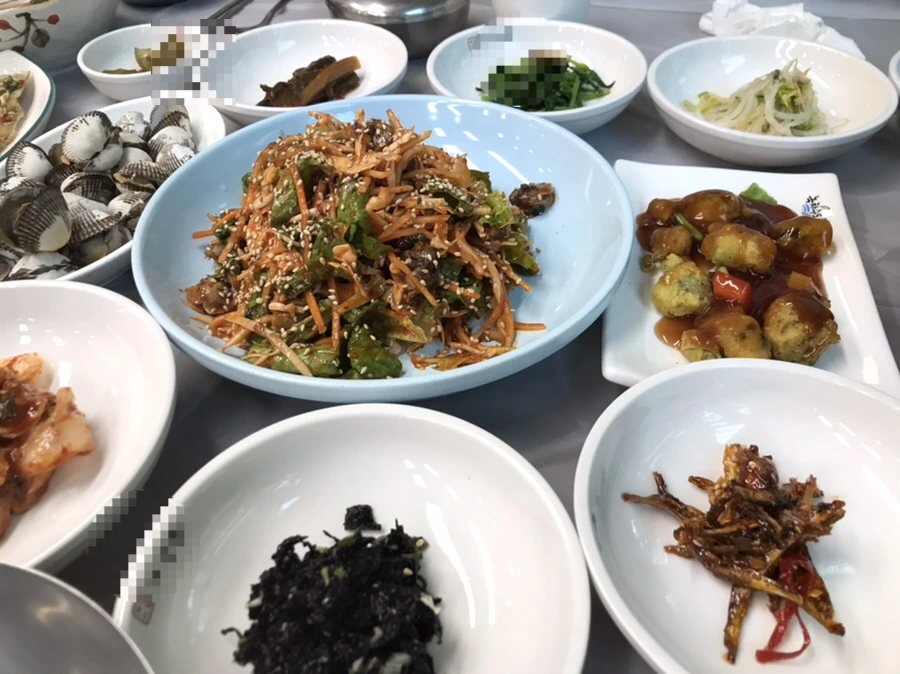 가는 길에 점심을 먹으러 꼬막정식집에 들렀다. 신혼 초 남편과 보성 여행을 갔을 때 가 보려 했지만 그가 이름을 기억하지 못해서 결국 패스할 수밖에 없던 식당이었다. 1박 2일인가에서 나왔다는 꼬막정식 골목과는 떨어진, 보성 가는 길가에 있는데 거의 10년 만에 찾아온 셈이다. 자리에 앉으니 횟집처럼 흰 비닐을 탁자에 깔아주더니 그야말로 꼬막으로 한상 가득 음식들을 내어온다.