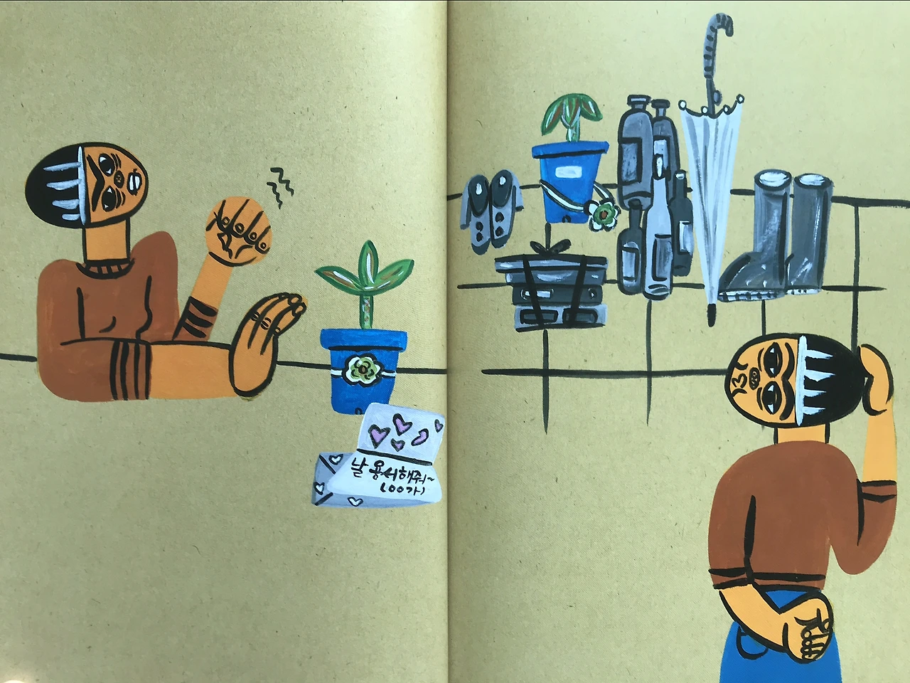 작가 특유의 굵고 강한 그림과 만나
