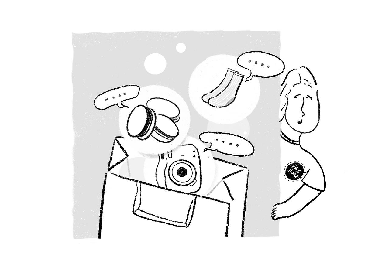 다시 바닥에 놓인 짐들을 본다. ‘여행 다니면서 찍어!’의 폴라로이드 카메라, ‘여러분, 오늘 ㅇㅇ가 퇴사해서 제가 선물을 준비했어요.’의 목걸이, ‘이거 진짜 아무것도 아니에요, 부담갖지마시라고..’의 마카롱, ‘오다가 주웠어요.’의 양말. 선물과 함께 녹음된 그들의 말이 짐들 사이에서 흘러나온다.