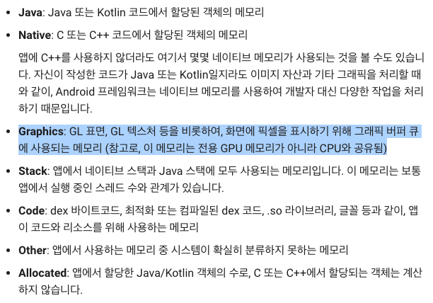 결과는 프로파일러를보면 Graphics 메모리를 사용한다!!