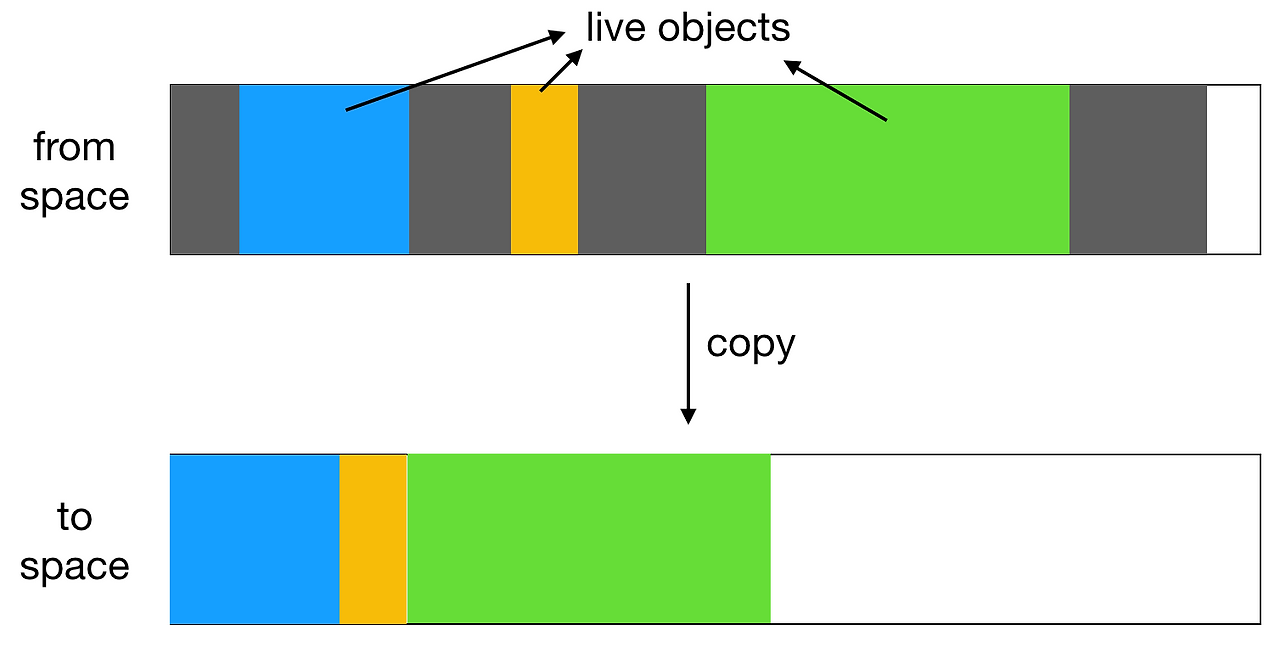New Generation에서는 복사-클리어 알고리즘? 을 사용한다고 해야 하나... JVM과 비슷한 거 같다. GC발생 시 현재 사용된 메모리 블록의 남아있는 객체가 스페어 메모리 블록에 복사된 다음 현재 사용된 메모리 블록이 지워지고 마지막으로 두 메모리의 역할이 교체된다.