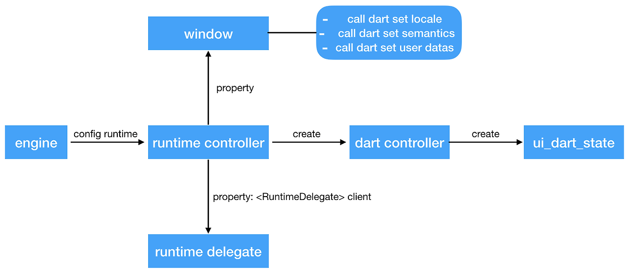 필자의 이해에 따르면 Flutter Engine은 크게 다트 UI, 런타임, 셸이라는 세 부분으로 나눌 수 있다.