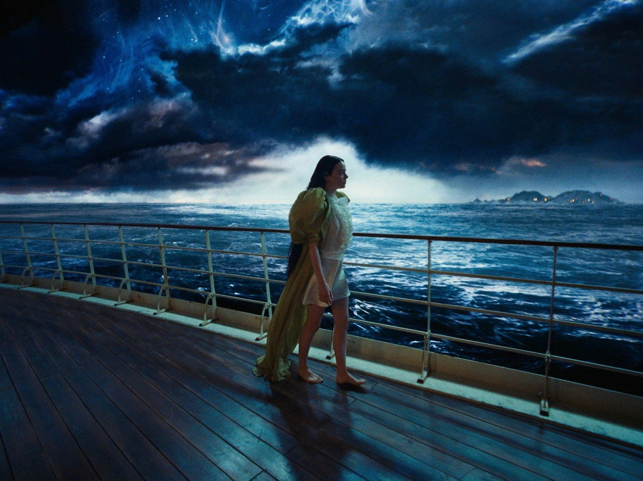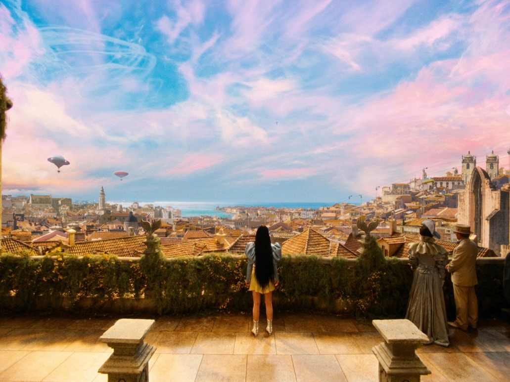 <가여운 것들>의 세계는 숨을 쉬며, 화면 속 모든 요소가 벨라의 여정을 따라 춤춘다. 기괴하면서도 황홀한 미장센은 이 영화의 가장 강렬한 언어다. 벨라라는 인물이 추구하는 자유와 탐험, 그리고 규칙 없는 삶을 완벽히 시각화한다. 영화 속 공간들은 마치 벨라를 위해 특별히 디자인된 듯한 독창성을 자랑한다. 낡고 비현실적인 저택, 황량한 광장, 파스텔빛 하늘, 그리고 생경한 도시의 풍경들은 그녀의 내면 세계와 절묘하게 연결된다. 이러한 공간들은 단순히 이야기를 담는 배경이 아니라, 벨라의 존재 자체를 투영하는 또 하나의 주인공이다.