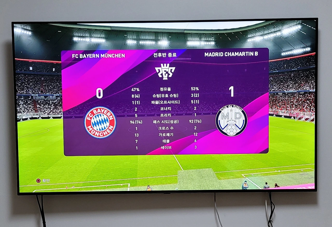 조작을 익히는 게 보통 일이 아니었지만 남편이 알아서 나를 호날두로 설정하고 약팀이랑만 붙여주니 약간 천재적인 골도 몇 번 넣고 이겨서 재미났다. 골대 앞에서 무조건 슛만 누르던 버릇을 조금 고치고 그냥 패스와 쓰루패스를 구분할 정도로는 성장했다고 생각한다.