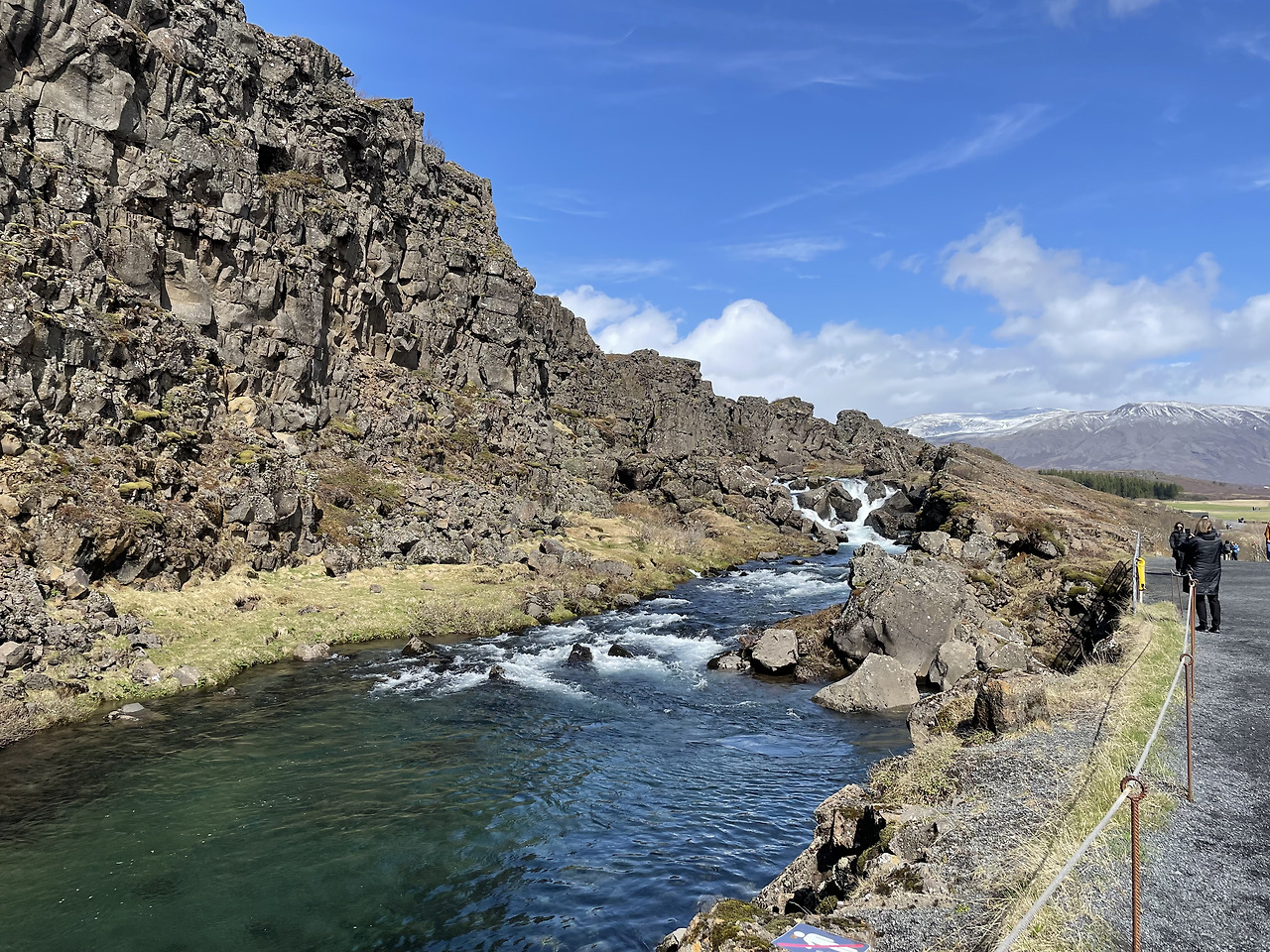 배와 마음이 든든해진 채로 첫 번째 목적지인 싱벨리어Pingvellier로 향했다. 철자가 사실 P는 아니고 P에서 살짝 기둥 위로 하나 솟아있는 모양의 레터… 이거이거.. ‘소른’이라고 하는 건데 발음은 th이고, 룬 문자의 자취가 현재 라틴어 체계로 변화면서도 살아남은 유일한 케이스..이며 전 세계적으로도 보수적인 아이슬란드에서만 사용되고 있다고 한다.