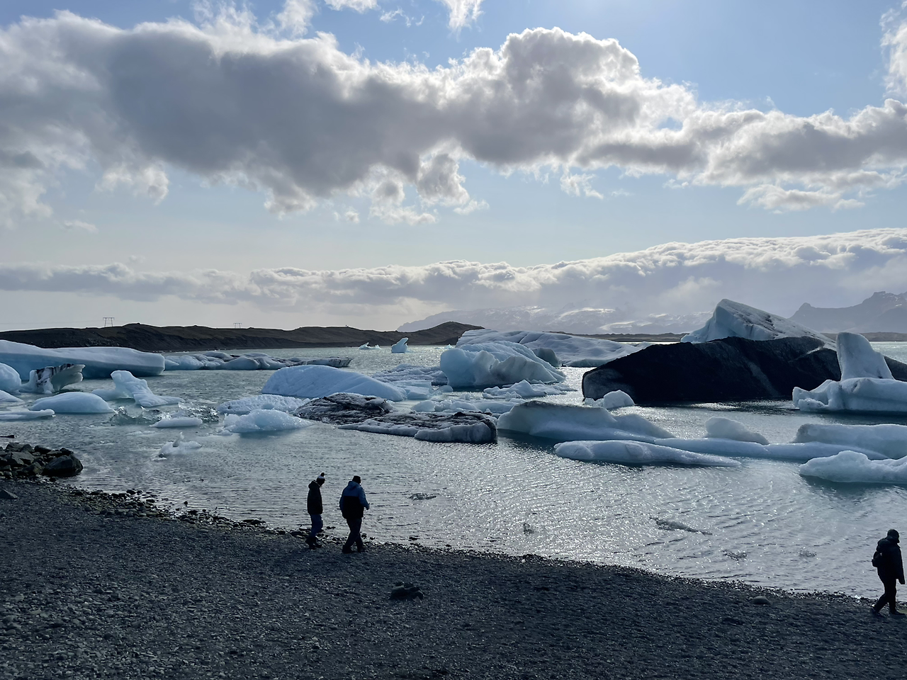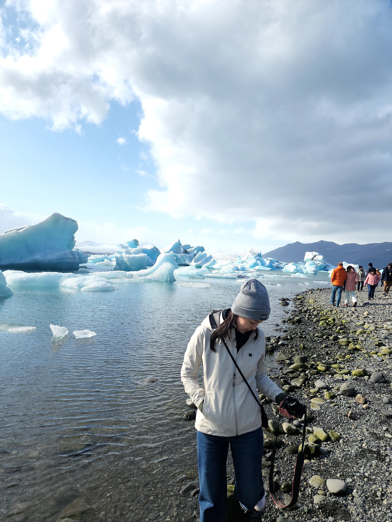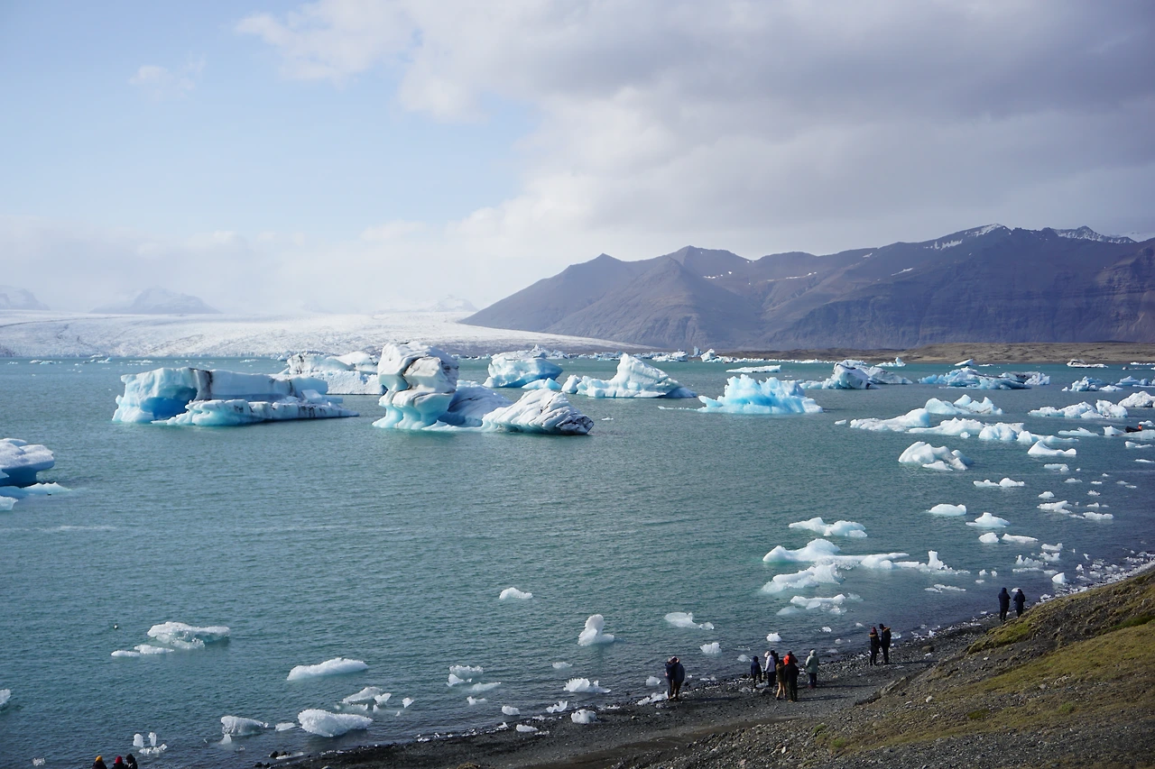 저 멀리 빙하에서 떨어져 나온 유빙들이 떠다닌다. 빙하 호수가 정말 맑다.