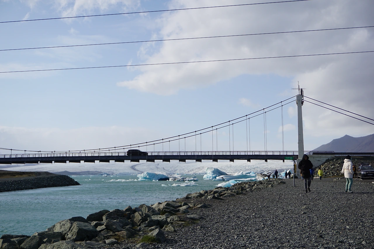 다이아몬드 비치Diamond Beach로 가는 길에서 요쿨살론 쪽을 바라본 모습.