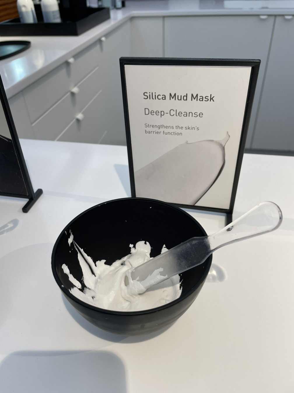 머드팩은 네 개 중 세 개를 선택하는 거였나 그랬는데, 일단 처음엔 검정색 현무암 머드 질감인 스크럽?같은 걸 골랐다.
