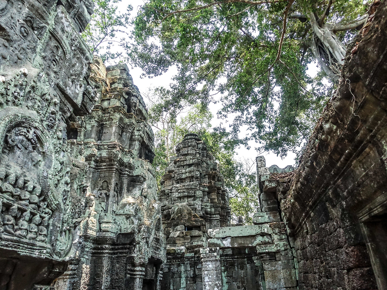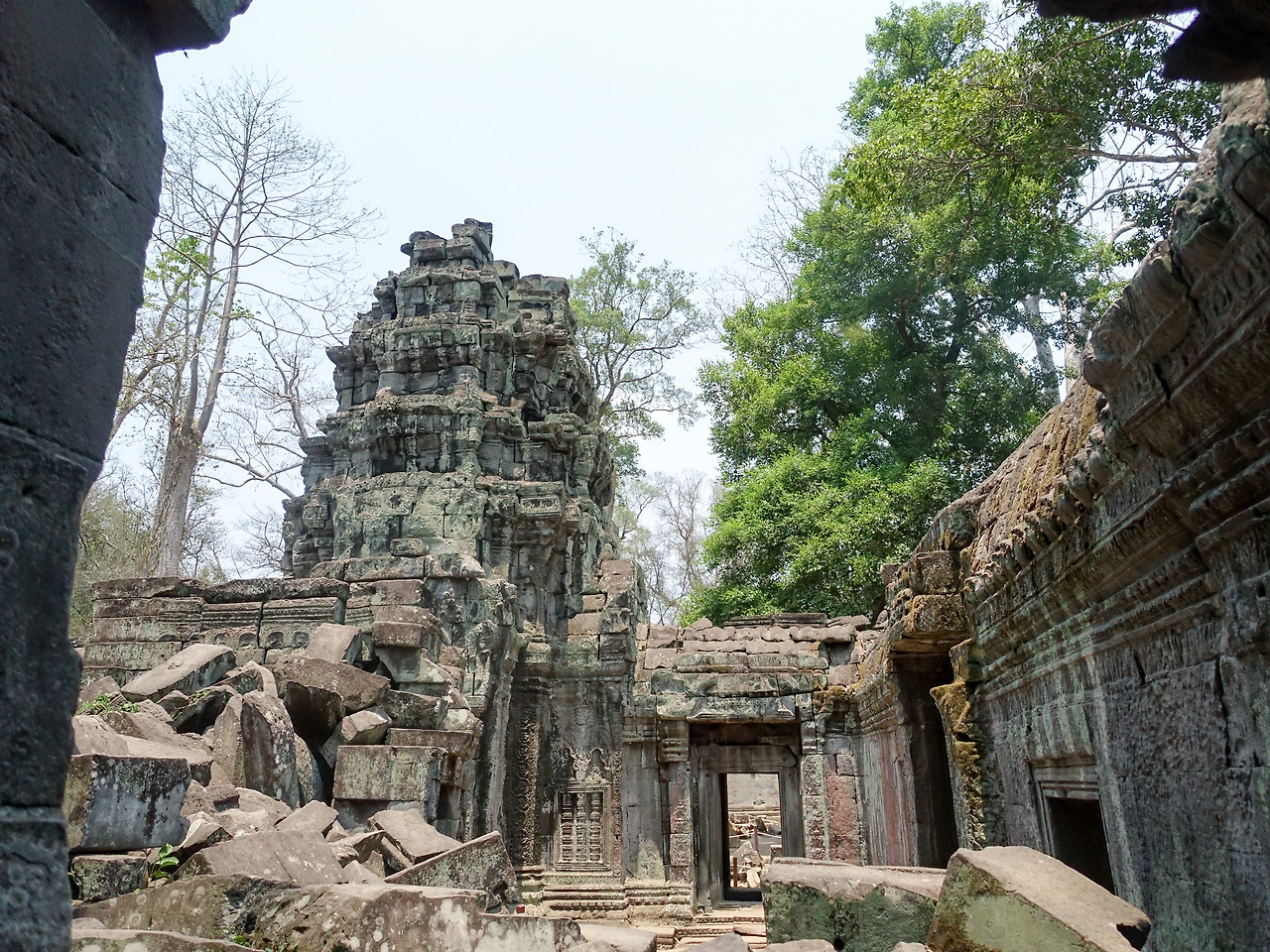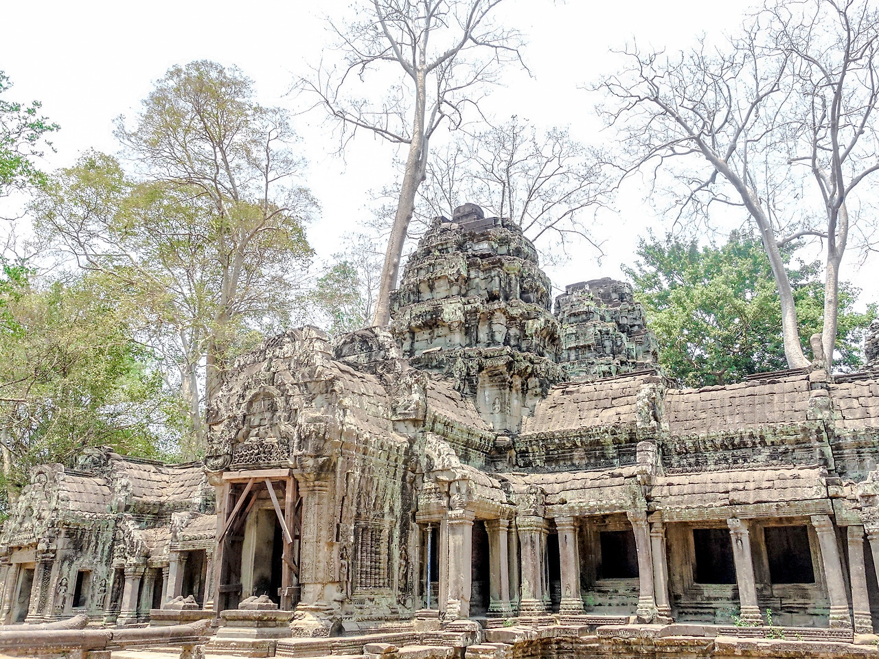 나무가 이 곳의 주인인냥 사원의 곳곳을 타고 오른 거대한 줄기와 무너진 건물 잔해들은 마치 이 곳에서 인간에게 허용된 곳과 그렇지 않은 곳을 알려주는 듯하다. 또한 거대 나무들 덕에 앙코르 유적지의 여느 사원과는 달리 나무그늘을 만나기가 쉬워 마음같아선 그늘막에 느긋하게 머물다 가고싶었다. 그래서인지 앙코르 유적지 중에서도 단연 묘한 매력을 느낄 수 있다.