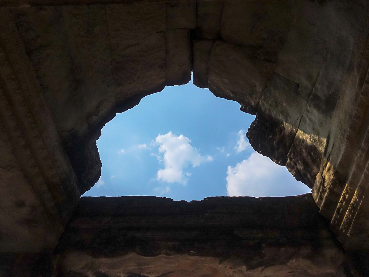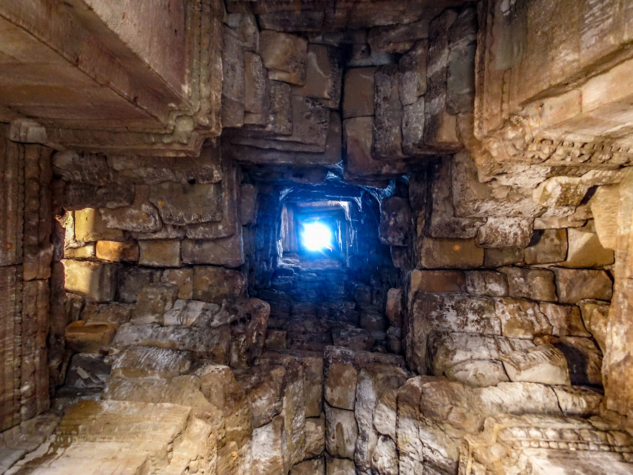 바이욘 사원 내부의 천장에는 정확한 용도는 알 수 없는, 빛이 드나드는 구멍이 있다. 그 곳을 통해 들어 오는 빛은 마치 계시가 내려오는 듯 신비롭기 짝이 없습니다.