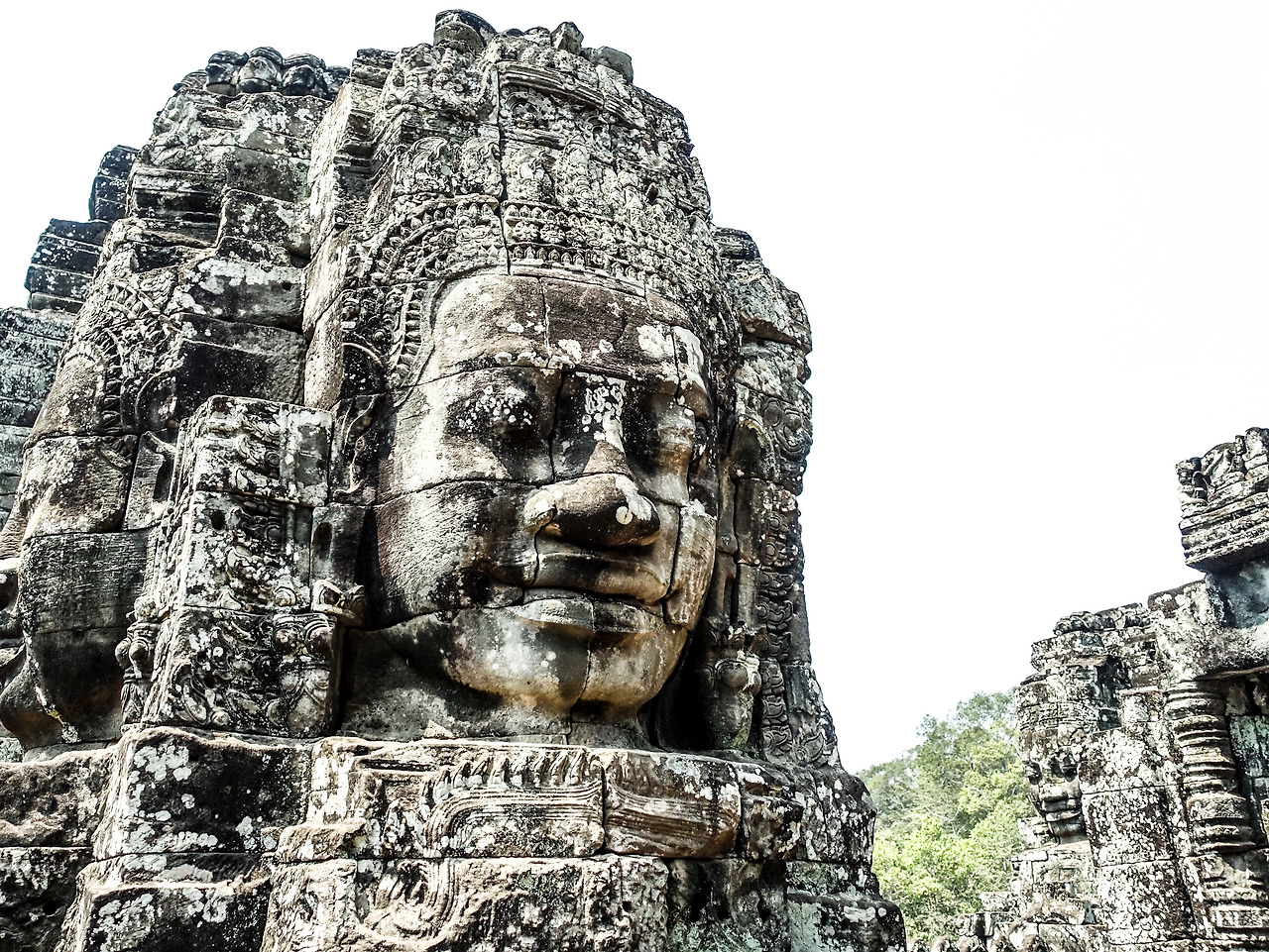 특히 앙코르 톰에서 가장 큰 사원인 바이욘(Bayon) 내에는 곳곳에 마치 이 곳을 지키는 듯한 석좌불이 있고, 사원 안을 가득 채운 탑들에는 기묘한 표정들로 이뤄진 '앙코르의 미소' 또는 '크메르의 미소'라 불리는 얼굴들이 조각되어 있다.