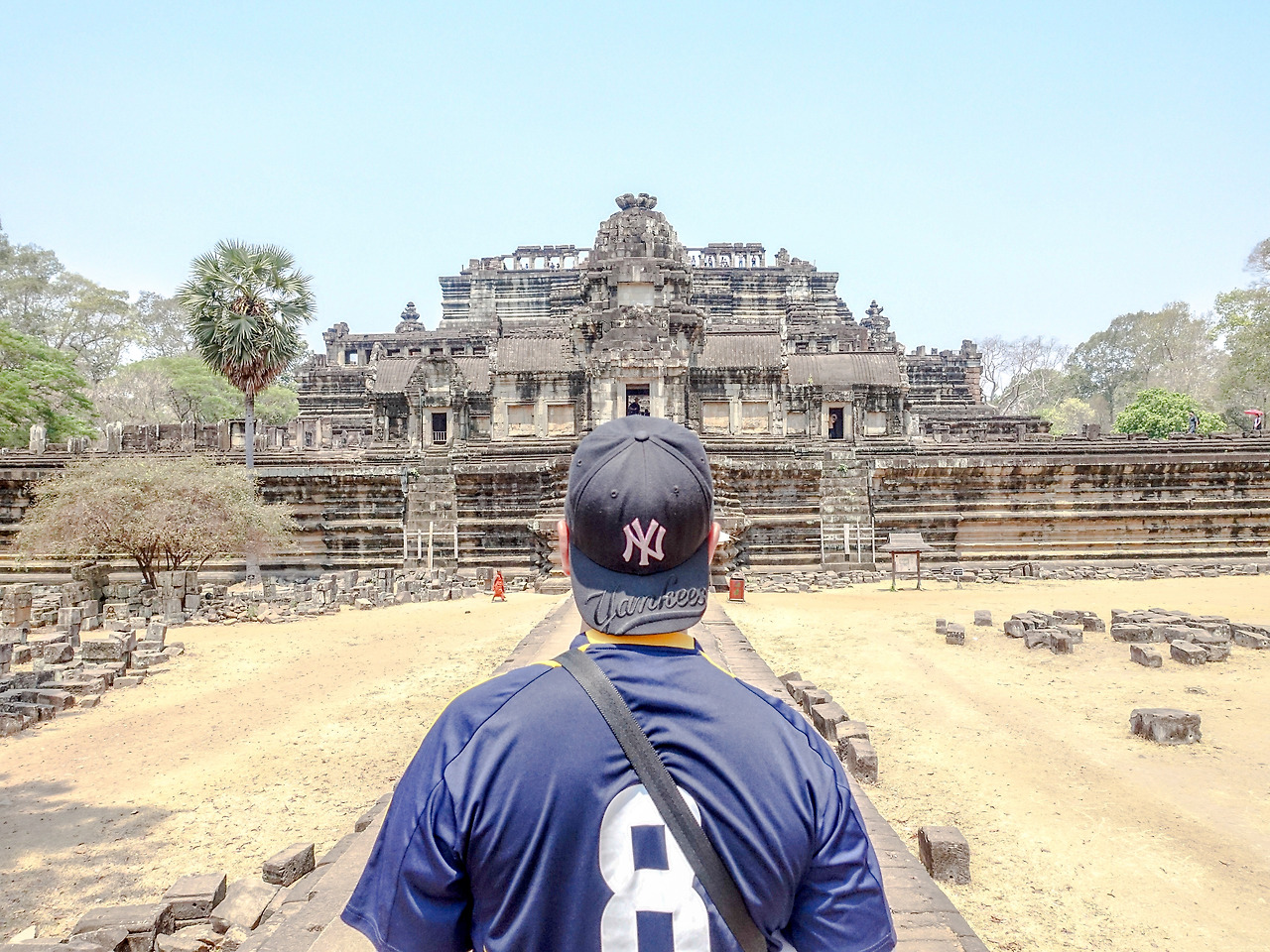 친구녀석의 어꺠너머로 바푸욘 사원의 위용이 드러난다. 이때까지만 해도 바푸욘 사원엔 올라야 할 계단이 많다는 것을 인지하지 못했다.