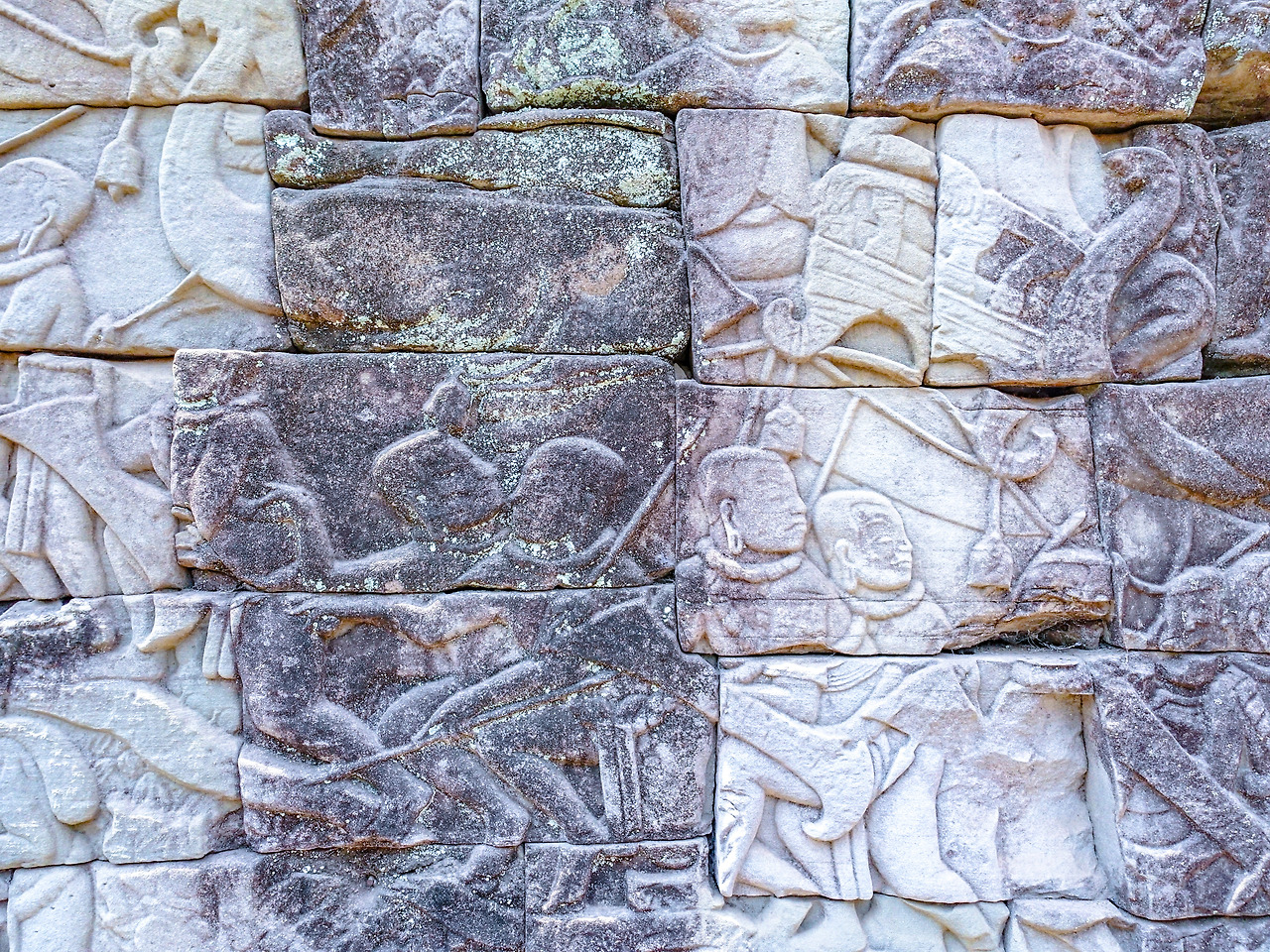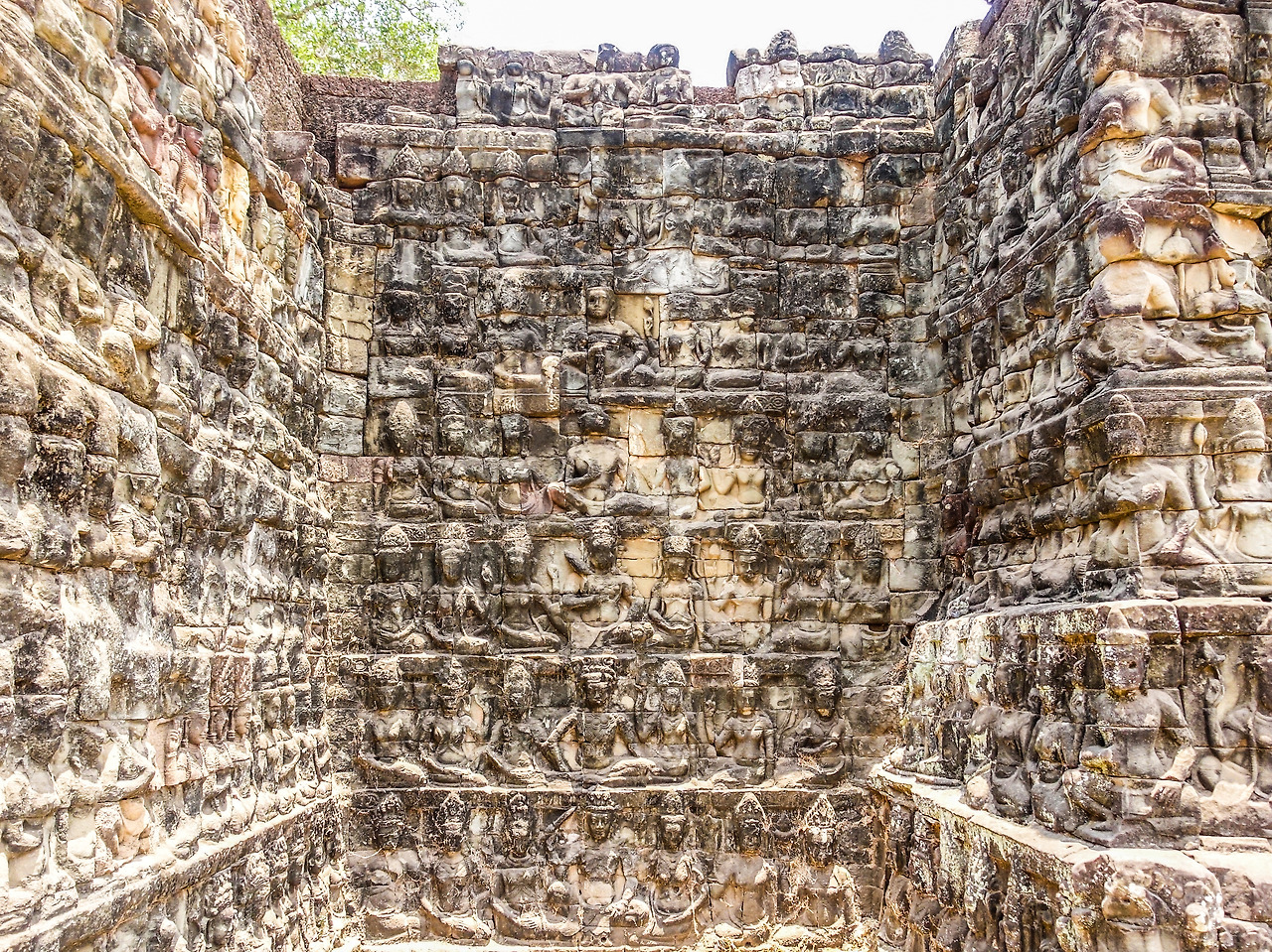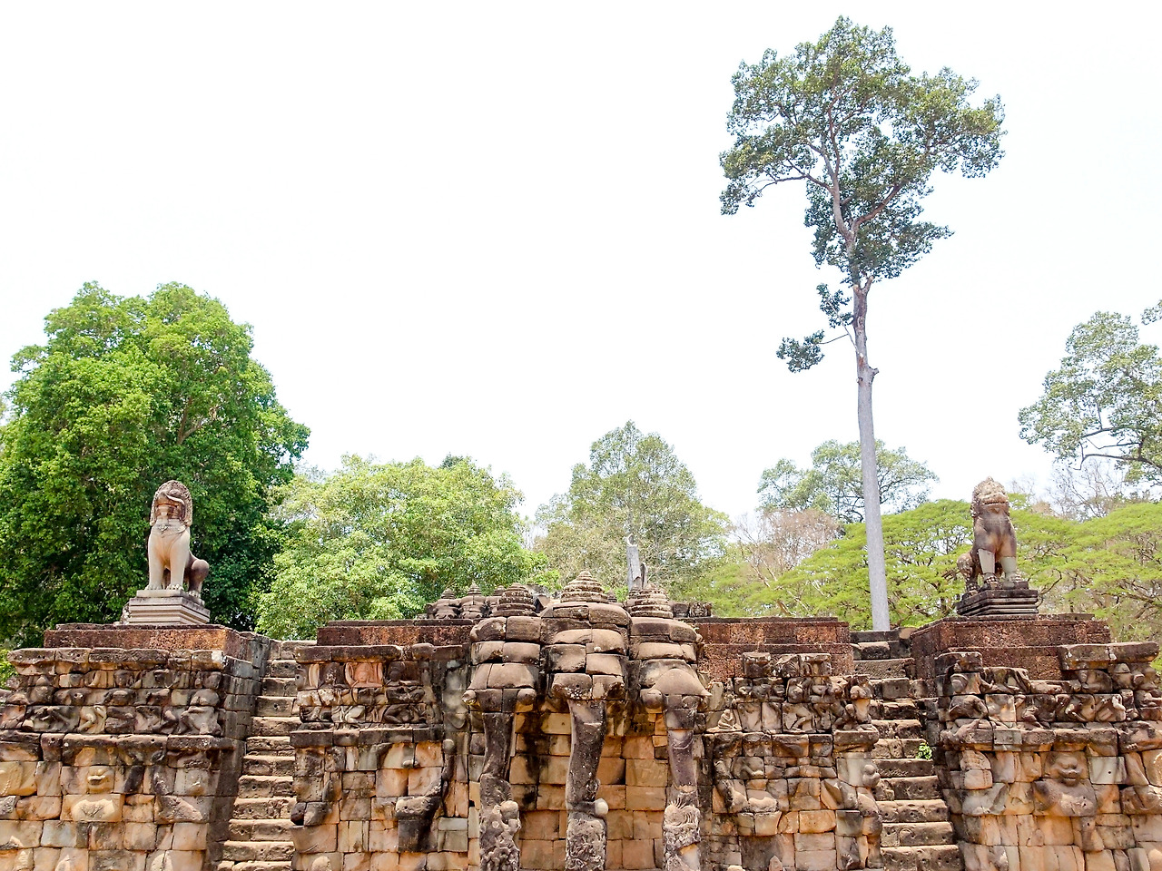 바푸욘 사원을 거쳐 코끼리 테라스에 왔을때엔 이미 지칠대로 지친 상태였다. 이름 그대로 테라스다보니 실내공간이 없는 이 곳은 미로같은 통로를 거치는 동안 벽면에 새겨진 무수한 불상과 함께 많은 것을 번뇌하게 된다. 수많은 번뇌 끝에 아니 미로 같은 통로를 나서면 이곳이 왜 코끼리 테라스인지 알 수 있는 코끼리 조각을 만나게 됩니다.