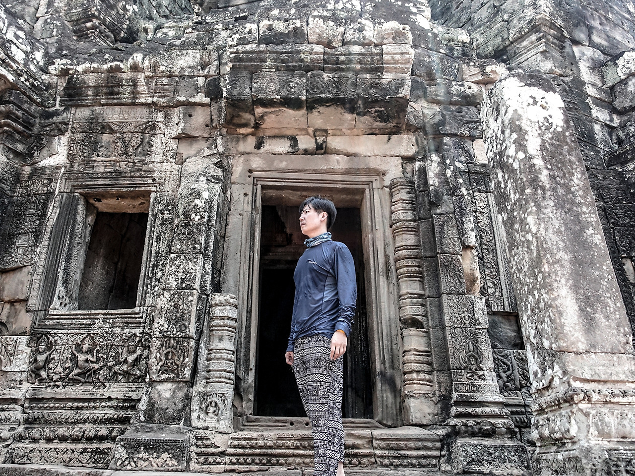 오랜 세월의 풍파를 겪은 사원의 얼룩과 한국산 냉장고 바지는 마치 이곳에 살던 크메르인들이 입던 옷이 아닐까?라고 생각 될만큼 절묘한 조화를 이루지 않습니까?