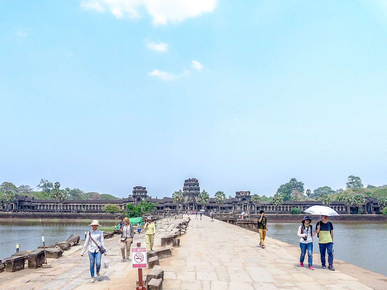 절로 큰 숨 한번 내쉬고는 앙코르 와트를 둘러 싼 해자(방어를 위한 물웅덩이 또는 물길)를 가로지르는 길디 긴 출입로를 걷는다. 연신 입으로는 뜨거운 공기를 '훅 훅' 토해내면서도 점점 가까워오는 사원의 모습에 마음은 들뜬다.