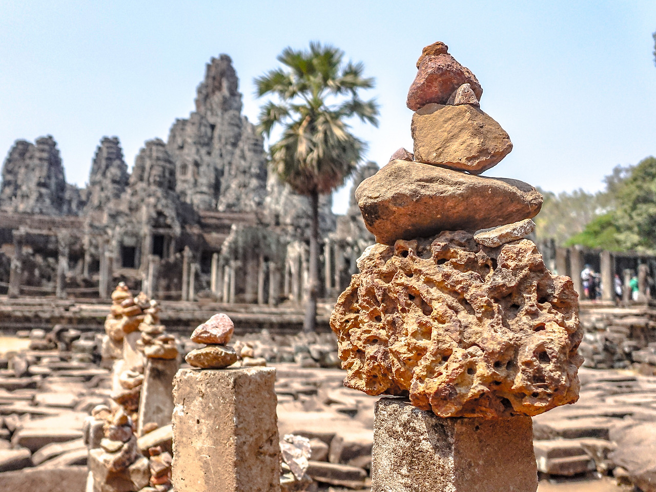 바이욘 사원 앞에는 누군가의 염원이 깃든 돌탑들이 늘어 서 있다. 돌탑은 무언가에 대한 순수한 간절함이 모인 피조물이다. 돌탑을 쌓는다는 건 무생물에 지나지 않던 돌에게 영혼을, 생명을 불어 넣는 성스로운 행위이다. 따라서 돌탑의 높이가 어떠하든 소망의 크기가 어떠하든 돌탑을 대할 때엔 가벼움이 없어야 합니다.