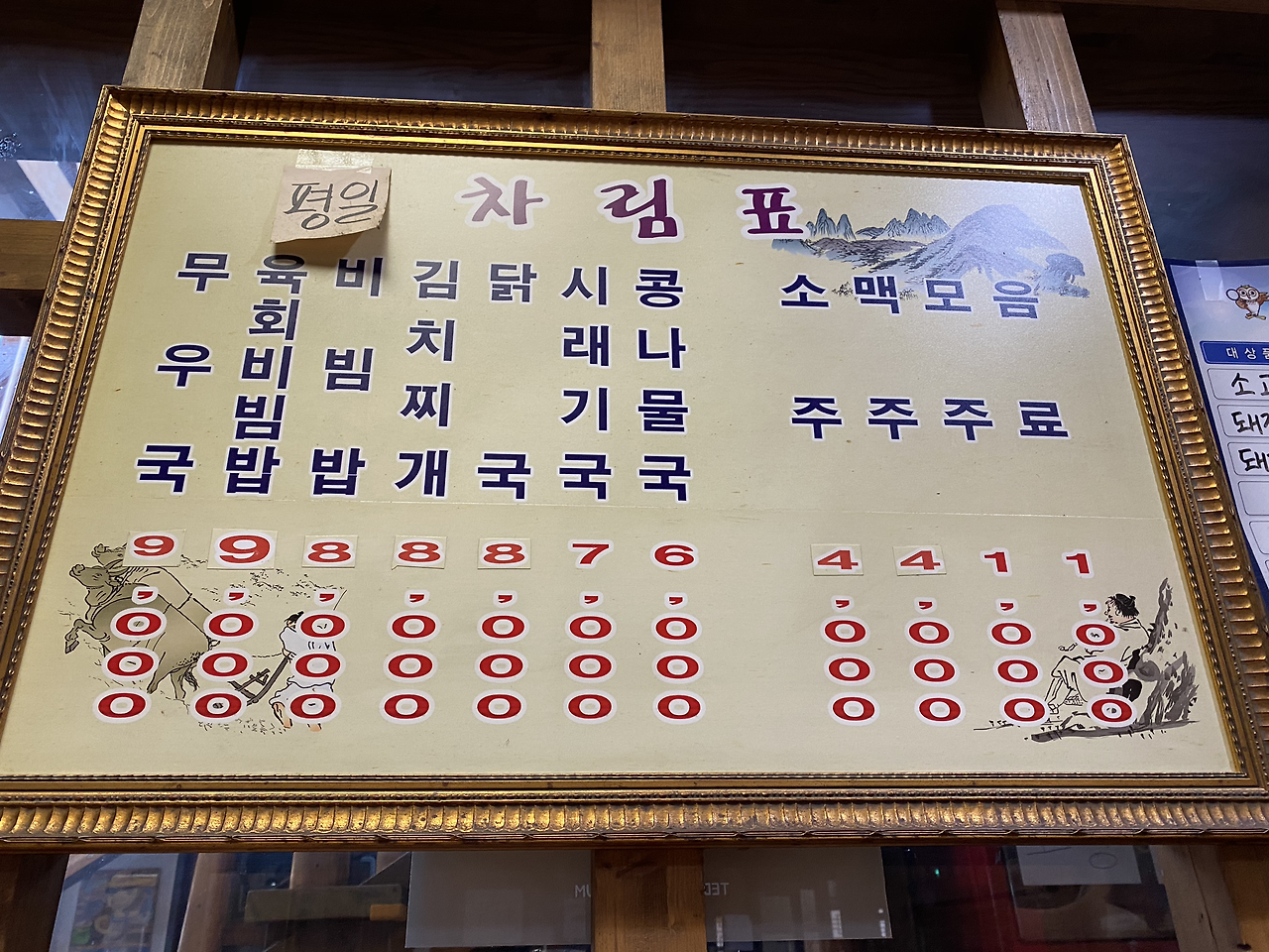 펄펄 끓는 무우국이 등장합니다. 맑은 국물에 한번 흠칫 놀라고, 한 숟가락 국물을 맛본 순간 표정이 풀립니다. 입가에 엷은 미소가... 그리고 입은 쉴 새 없이 오물오물 움직입니다. 이 소박한 반찬에 대한 불만을 모두 제압할 수 있는 단 하나의 메인디쉬, 무우국. 식당의 단출한 메뉴판에서 유난히 빛나는 무우국.