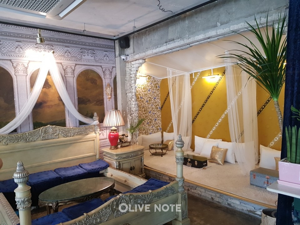 다음은 지난여름 인스타그램을 뜨겁게 달군 카페 '호텔 707'입니다. 문을 열고 들어가면 마치 중세시대 유럽의 어느 성이나 동남아 왕궁 내 공주방에 들어온 듯한 착각을 일으키는 침대와 소품들이 눈길을 끌어요. 로맨틱한 분위기를 좋아한다면 '와~ 너무 예쁘다!'는 감탄사를 연발할 거예요.