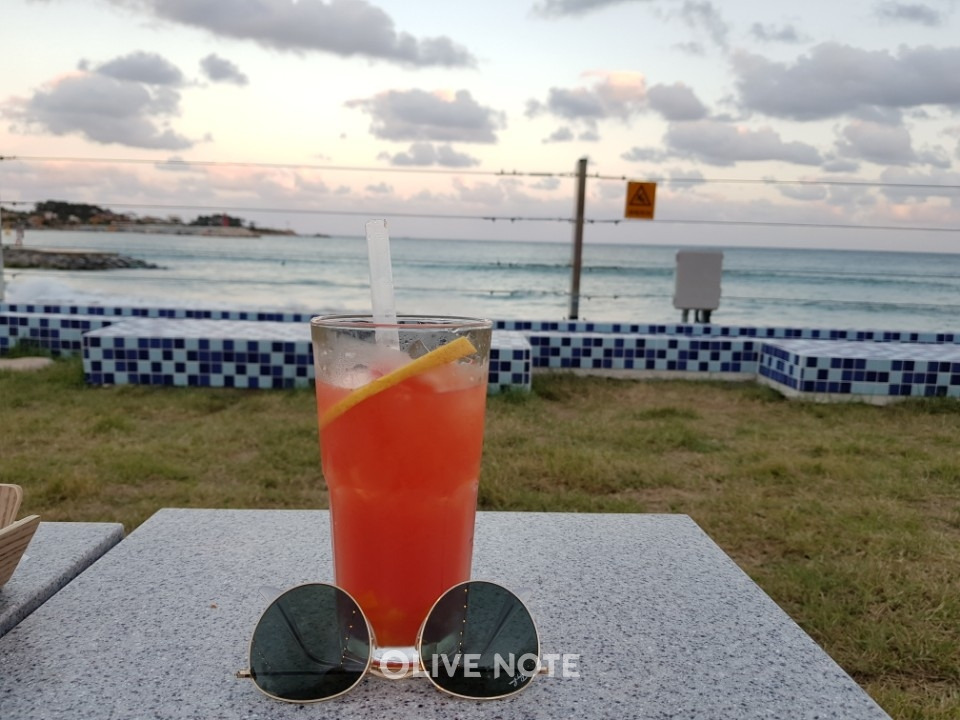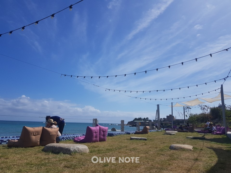 봄부터 초가을까지는 푹신푹신한 소파에 반쯤 누워 푸르른 바다를 보면서 철썩이는 파도소리를 들을 수 있는데요. 여기에 커피까지 마시면 눈과 귀, 입까지 모두 너무 즐거울 거예요. 저는 정말 거짓말 조금 보태 이곳에서 천국을 맛봤답니다. ㅎㅎ