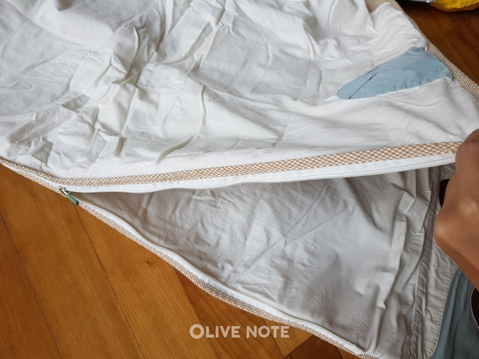 그래서 사진처럼 패드와 덮는 이불을 분리할 수 있는 제품이 편하고요. 특히 지퍼로 분리할 수 있도록 돼 있는 제품이 조금 더 사용하기 용이해요.