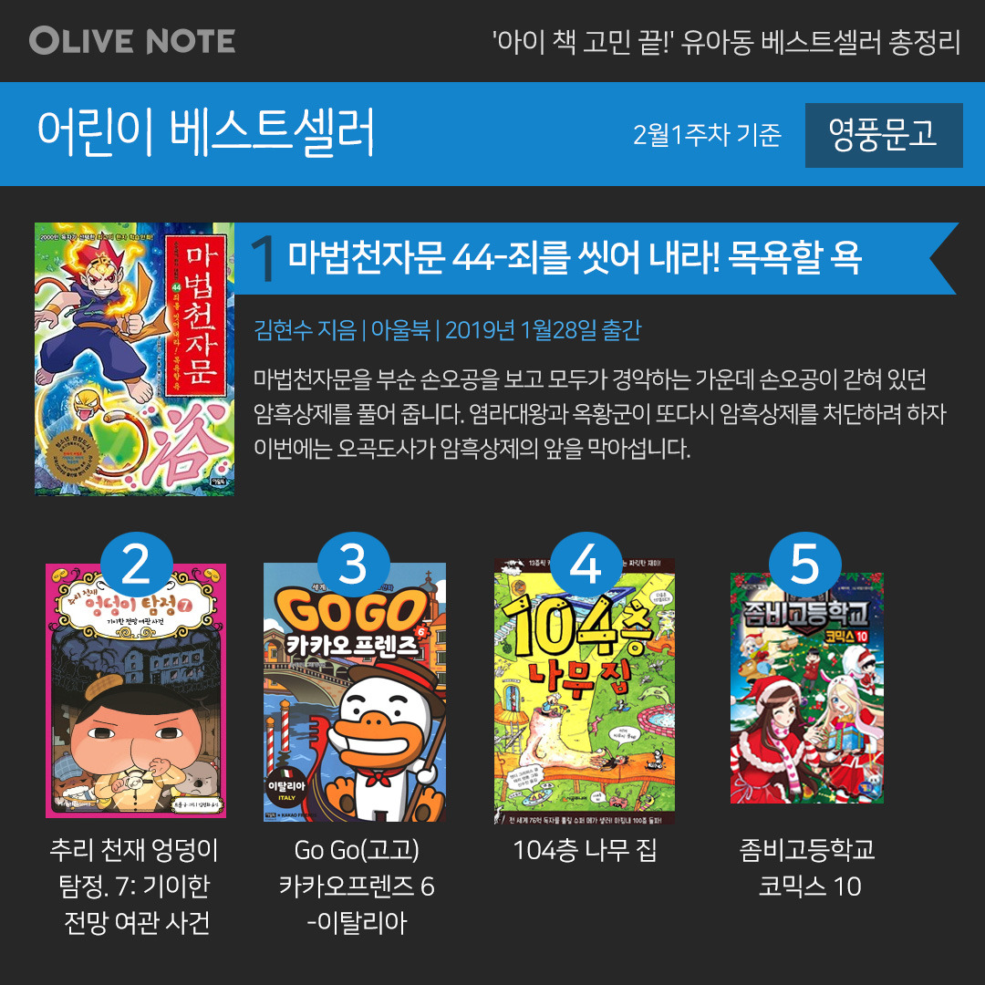 ◇어린이 베스트셀러(2월1주차 기준, 영풍문고)