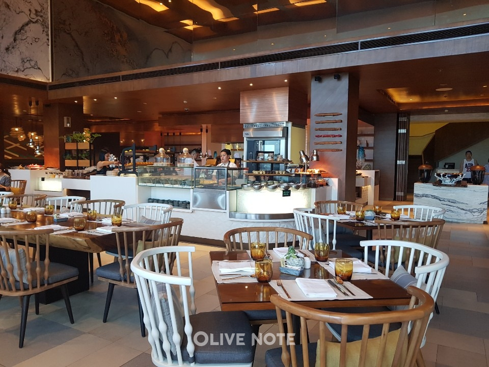 크림슨 리조트 조식은 일단 음식 종류가 다양하고 깔끔해요. 내부 인테리어도 럭셔리 하고요. 직원들의 서비스도 최상급입니다. 다만, 맛이.. 맛이.. 없어요. ㅜㅜ