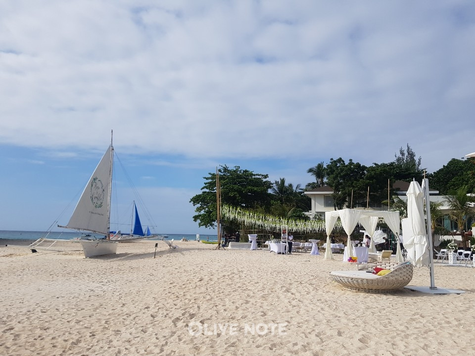 제가 이곳에 머무른 첫날 야외 결혼식이 있어서 해변이 더 예쁘게 꾸며져 있었어요. 리조트 직원에 따르면 결혼하는 부부가 필리핀의 엄청난 갑부라고 하더라고요. (부러우면 지는건데 말이죠!)