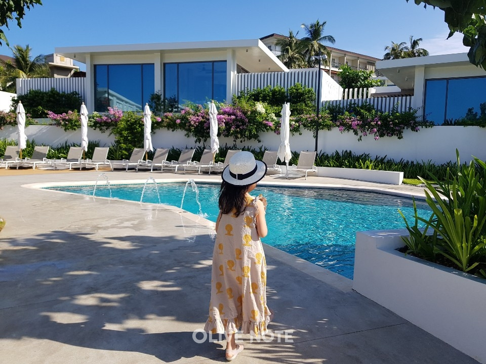 휴양지 리조트의 주요 고객 중 하나인 아가 손님들을 위한 키즈풀도 있어요. 담벼락 너머로 흘러내린 꽃들이 너무 예쁜 데다 한적해서 개인적으로 마음에 드는 풀이었는데 아이는 재미없다며 메인풀에서만 놀더라고요. ㅎㅎ