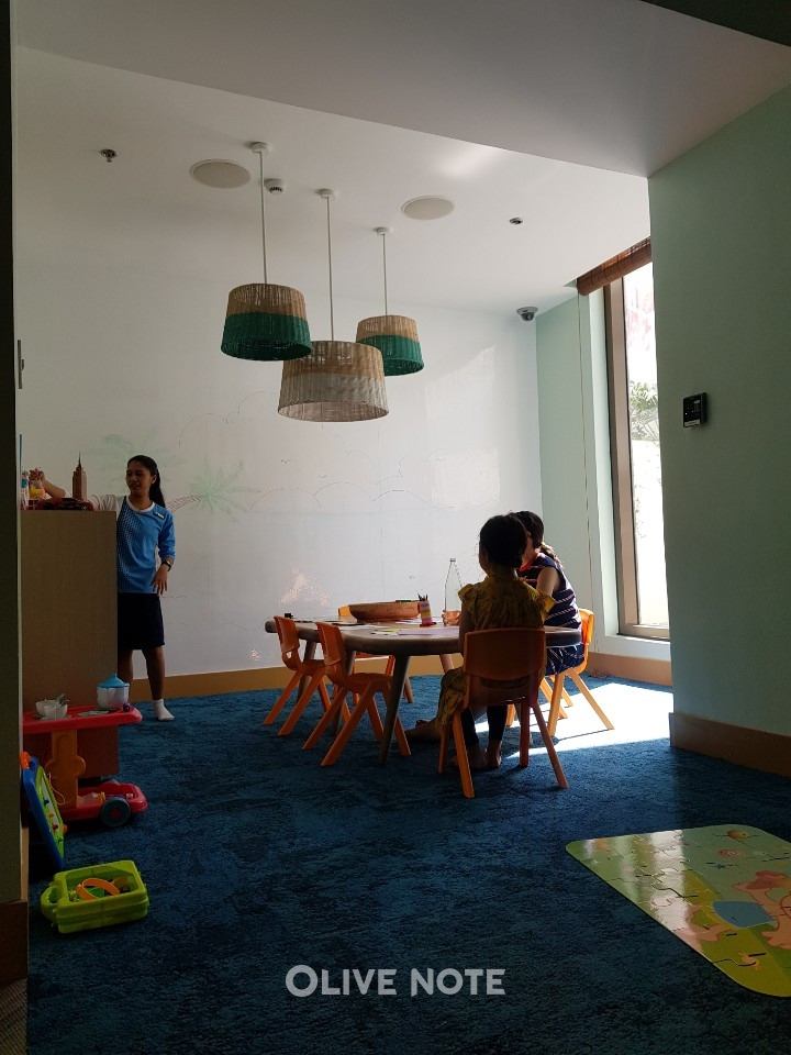 키즈 프로그램은 '크림존(CRIM ZONE)'에서 이뤄지는데요. 조식 식당 반대편 골목으로 들어가면 크림존을 찾을 수 있어요. 시간대별로 예약을 하는데 저희는 사람이 그리 많지 않아서 예약하지 않고도 바로 이용할 수 있었답니다.