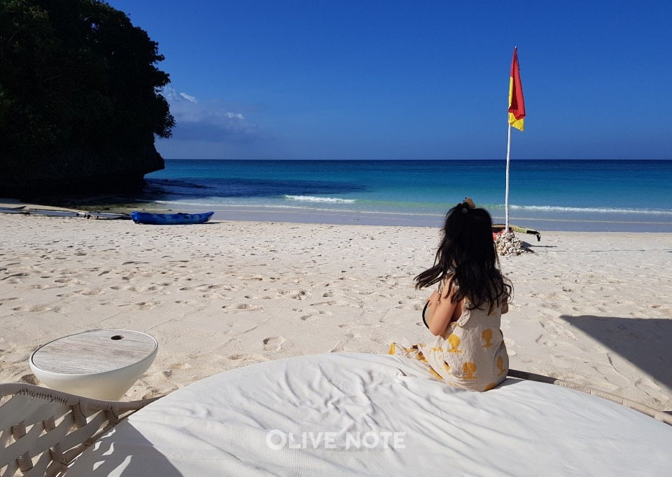 쿠션이 있는 썬 베드에 누워서 하늘인지 바다인지 구분이 되지 않는 보라카이의 바다를 멍~하니 보고 있으니 시간이 어떻게 가는지 모르겠더군요. 대신 저의 피부를 제물로 바쳐야 했지만요. ㅎㅎ
