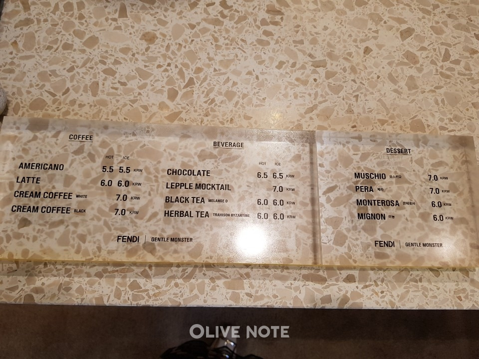 커피 가격은 '펜디'라는 명품 브랜드가 들어갔음에도 불구하고 저렴합니다. 지난번 올리브노트 특별취재팀이 방문한 청담동 디올카페(☞관련기사 [강남쌀롱]청담동 명품카페 '카페디올' 최고가 디저트 가격은? )와 비교하면 너무나 착한 가격이죠. 둘 다 가본 입장에서 저는 '카페 더 가든' 편을 3000만큼(어벤져스:엔드게임 참고^^) 들어주고 싶네요. ㅎㅎ