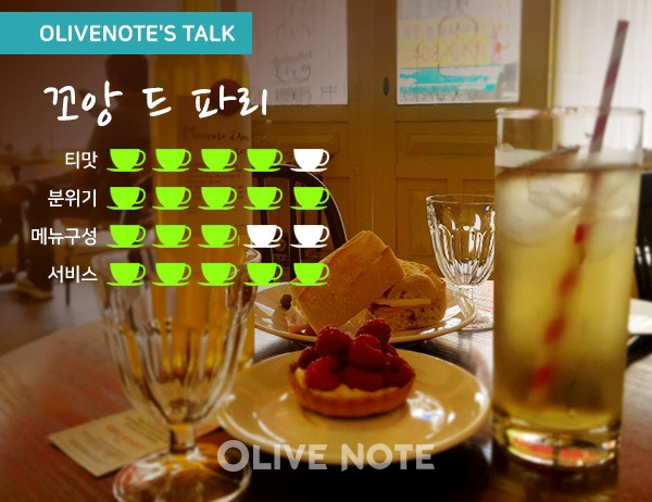 꼬앙 드 파리는 한국인은 물론 중국인과 일본인 등 외국인들에게도 인기 있는 곳이라서 그런지 자리에 앉아서 나올 때까지 카메라 찍는 소리에 정신이 없었지만(덕분에 아이가 전혀 부산스럽게 느껴지지 않더라고요) 쉽게 볼 수 없는 티카페라는 점과 이색적인 인테리어, 그리고 맛있는 음료에 조금 인기가 사그라들고 나면 다시 가보고 싶어요. 아! 사장님과 직원들의 친절함도 아직 기억에 남네요! ^^